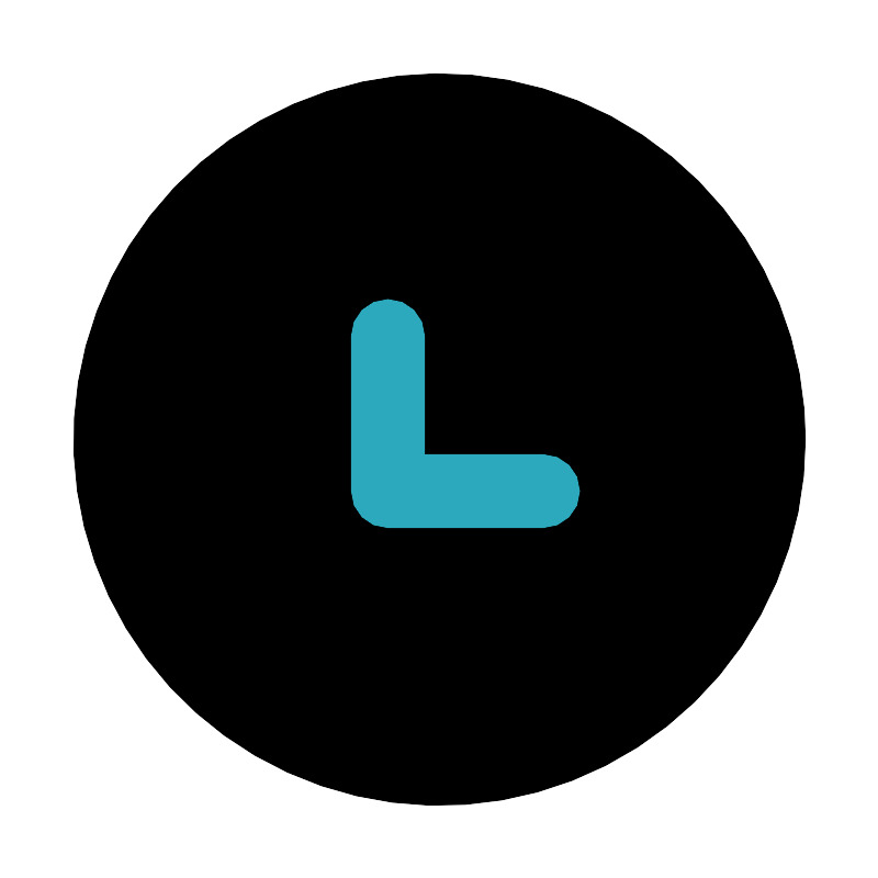 <svg fill="#000000" width="800px" height="800px" viewBox="0 0 24 24" id="down-left-circle" data-name="Flat Color" xmlns="http://www.w3.org/2000/svg" class="icon flat-color"><circle id="primary" cx="12" cy="12" r="10" style="fill: rgb(0, 0, 0);"></circle><path id="secondary" d="M14.83,14.41H10.59a1,1,0,0,1-1-1V9.17a1,1,0,1,1,2,0v3.24h3.24a1,1,0,1,1,0,2Z" style="fill: rgb(44, 169, 188);"></path></svg>