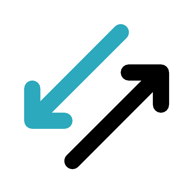 <svg fill="#000000" width="800px" height="800px" viewBox="0 0 24 24" id="down-up-left-right-arrow" data-name="Flat Color" xmlns="http://www.w3.org/2000/svg" class="icon flat-color"><path id="secondary" d="M15.71,3.29a1,1,0,0,0-1.42,0L5,12.59V11a1,1,0,0,0-2,0v4a1,1,0,0,0,1,1H8a1,1,0,0,0,0-2H6.41l9.3-9.29A1,1,0,0,0,15.71,3.29Z" style="fill: rgb(44, 169, 188);"></path><path id="primary" d="M20,8H16a1,1,0,0,0,0,2h1.59l-9.3,9.29a1,1,0,0,0,0,1.42,1,1,0,0,0,1.42,0L19,11.41V13a1,1,0,0,0,2,0V9A1,1,0,0,0,20,8Z" style="fill: rgb(0, 0, 0);"></path></svg>