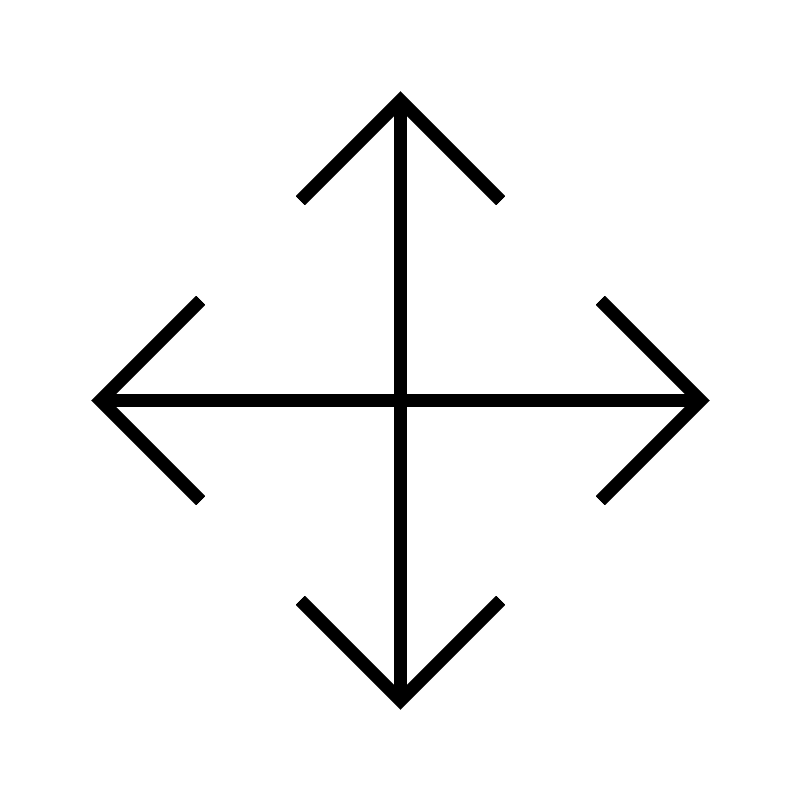 <svg width="800px" height="800px" viewBox="0 0 64 64" xmlns="http://www.w3.org/2000/svg" fill="none" stroke="#000000"><line x1="32" y1="8" x2="32" y2="56"/><line x1="56" y1="32" x2="8" y2="32"/><polyline points="40 16 32 8 24 16"/><polyline points="24 48 32 56 40 48"/><polyline points="48 40 56 32 48 24"/><polyline points="16 24 8 32 16 40"/></svg>
