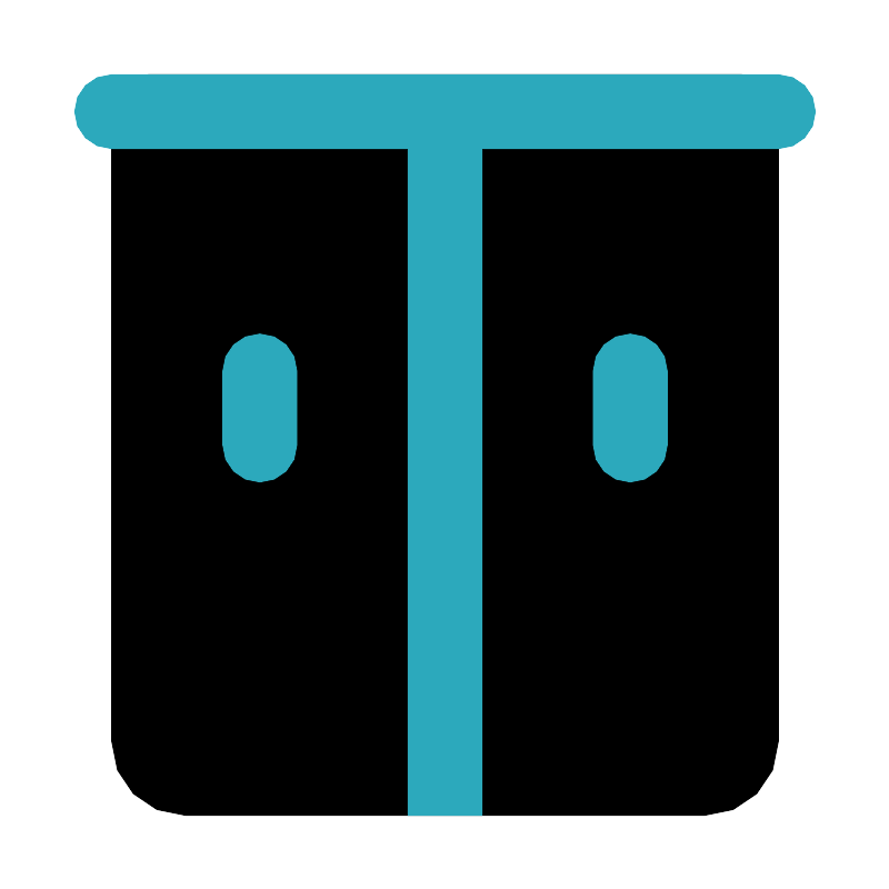<svg fill="#000000" width="800px" height="800px" viewBox="0 0 24 24" id="drawers-3" data-name="Flat Color" xmlns="http://www.w3.org/2000/svg" class="icon flat-color"><path id="primary" d="M20,2H4A1,1,0,0,0,3,3V20a2,2,0,0,0,2,2H19a2,2,0,0,0,2-2V3A1,1,0,0,0,20,2Z" style="fill: rgb(0, 0, 0);"></path><path id="secondary" d="M17,13a1,1,0,0,1-1-1V10a1,1,0,0,1,2,0v2A1,1,0,0,1,17,13ZM8,12V10a1,1,0,0,0-2,0v2a1,1,0,0,0,2,0ZM21,2H3A1,1,0,0,0,3,4h8V22h2V4h8a1,1,0,0,0,0-2Z" style="fill: rgb(44, 169, 188);"></path></svg>
