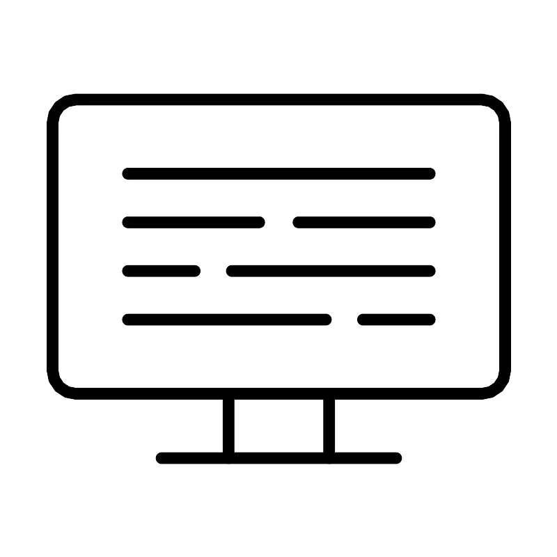 <svg width="800px" height="800px" viewBox="0 0 48 48" xmlns="http://www.w3.org/2000/svg"><defs><style>.a{fill:none;stroke:#000000;stroke-linecap:round;stroke-linejoin:round;}</style></defs><line class="a" x1="13.8953" y1="39.4505" x2="34.1047" y2="39.4505"/><rect class="a" x="4.5" y="8.5495" width="39" height="25.3535" rx="2"/><line class="a" x1="11" y1="14.9389" x2="37" y2="14.9389"/><line class="a" x1="11" y1="19.1304" x2="22.3045" y2="19.1304"/><line class="a" x1="25.6955" y1="19.1304" x2="37" y2="19.1304"/><line class="a" x1="11" y1="23.322" x2="16.7461" y2="23.322"/><line class="a" x1="19.9494" y1="23.322" x2="37" y2="23.322"/><line class="a" x1="37" y1="27.5136" x2="31.2539" y2="27.5136"/><line class="a" x1="28.0506" y1="27.5136" x2="11" y2="27.5136"/><line class="a" x1="28.3333" y1="33.903" x2="28.3333" y2="39.4505"/><line class="a" x1="19.6667" y1="33.903" x2="19.6667" y2="39.4505"/></svg>