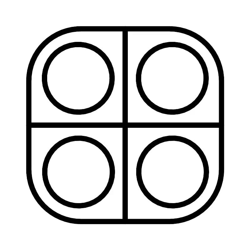 <svg width="800px" height="800px" viewBox="0 0 48 48" xmlns="http://www.w3.org/2000/svg"><defs><style>.a{fill:none;stroke:#000000;stroke-linecap:round;stroke-linejoin:round;}</style></defs><rect class="a" x="5.5" y="5.5" width="37" height="37" rx="10"/><circle class="a" cx="15" cy="15" r="6.5"/><circle class="a" cx="15.0514" cy="32.9881" r="6.5"/><line class="a" x1="5.5" y1="24" x2="42.5" y2="24"/><line class="a" x1="24" y1="5.5" x2="24" y2="42.5"/><circle class="a" cx="33.0514" cy="15" r="6.5"/><circle class="a" cx="33.1029" cy="32.9881" r="6.5"/></svg>