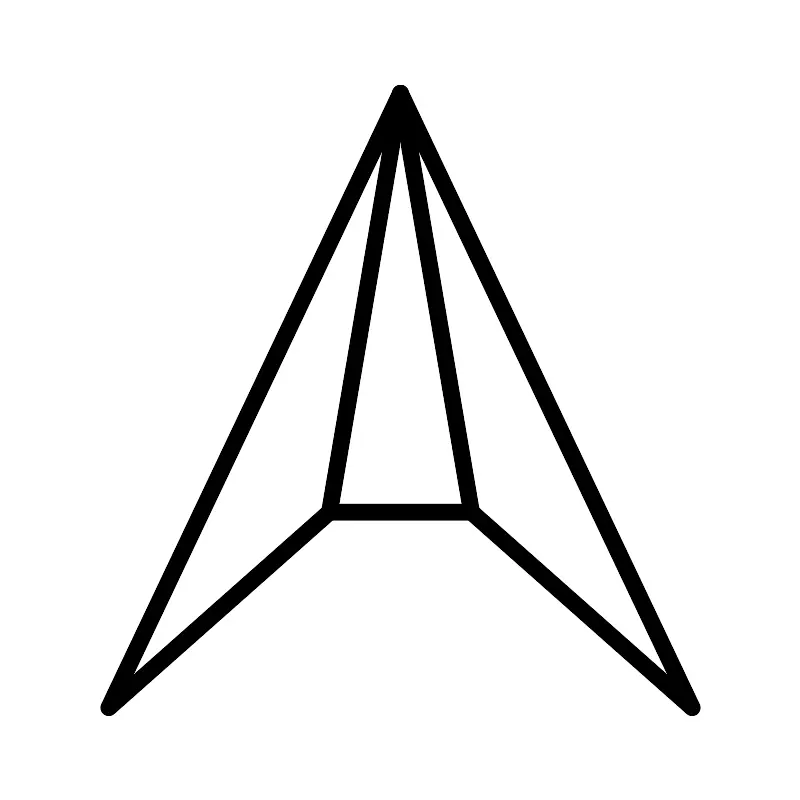 <svg width="800px" height="800px" viewBox="0 0 48 48" xmlns="http://www.w3.org/2000/svg"><defs><style>.a{fill:none;stroke:#000000;stroke-linecap:round;stroke-linejoin:round;}</style></defs><path class="a" d="M19.74,30.7,6.5,42.43,24,5.57"/><path class="a" d="M28.26,30.7,41.5,42.43,24,5.57"/><path class="a" d="M19.74,30.7h8.52L24,5.57Z"/></svg>