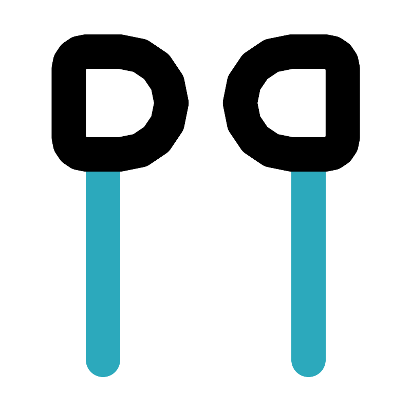 <svg fill="#000000" width="800px" height="800px" viewBox="0 0 24 24" id="earphone" data-name="Line Color" xmlns="http://www.w3.org/2000/svg" class="icon line-color"><path id="secondary" d="M6,21V9M18,9V21" style="fill: none; stroke: rgb(44, 169, 188); stroke-linecap: round; stroke-linejoin: round; stroke-width: 2;"></path><path id="primary" d="M7,9H5A1,1,0,0,1,4,8V4A1,1,0,0,1,5,3H7a3,3,0,0,1,3,3h0A3,3,0,0,1,7,9ZM17,9h2a1,1,0,0,0,1-1V4a1,1,0,0,0-1-1H17a3,3,0,0,0-3,3h0A3,3,0,0,0,17,9Z" style="fill: none; stroke: rgb(0, 0, 0); stroke-linecap: round; stroke-linejoin: round; stroke-width: 2;"></path></svg>