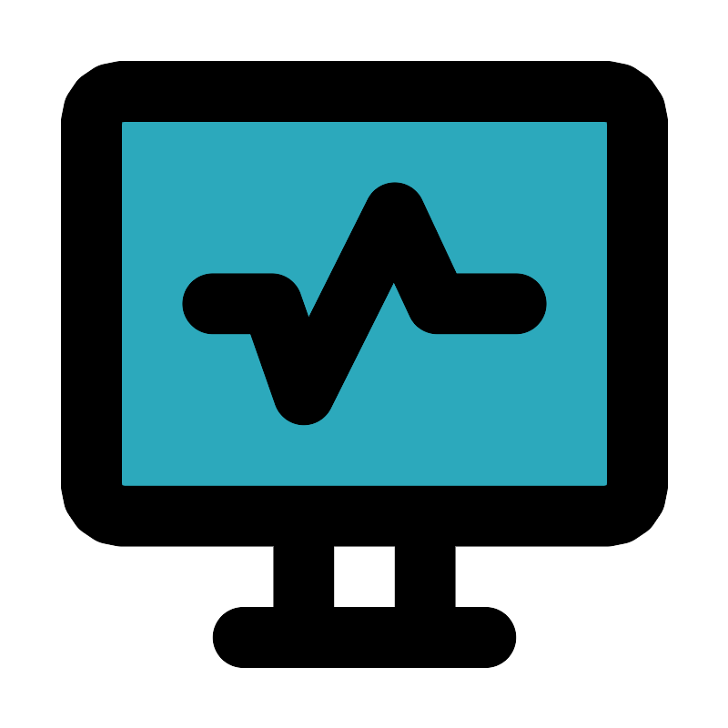 <svg fill="#000000" width="800px" height="800px" viewBox="0 0 24 24" id="electrocardiogram-3" data-name="Flat Line" xmlns="http://www.w3.org/2000/svg" class="icon flat-line"><rect id="secondary" x="3" y="3" width="18" height="14" rx="1" style="fill: rgb(44, 169, 188); stroke-width: 2;"></rect><polyline id="primary" points="17 10 14.4 10 13 7 10 13 8.95 10 7 10" style="fill: none; stroke: rgb(0, 0, 0); stroke-linecap: round; stroke-linejoin: round; stroke-width: 2;"></polyline><path id="primary-2" data-name="primary" d="M20,17H4a1,1,0,0,1-1-1V4A1,1,0,0,1,4,3H20a1,1,0,0,1,1,1V16A1,1,0,0,1,20,17ZM8,21h8m-2,0V17H10v4Z" style="fill: none; stroke: rgb(0, 0, 0); stroke-linecap: round; stroke-linejoin: round; stroke-width: 2;"></path></svg>