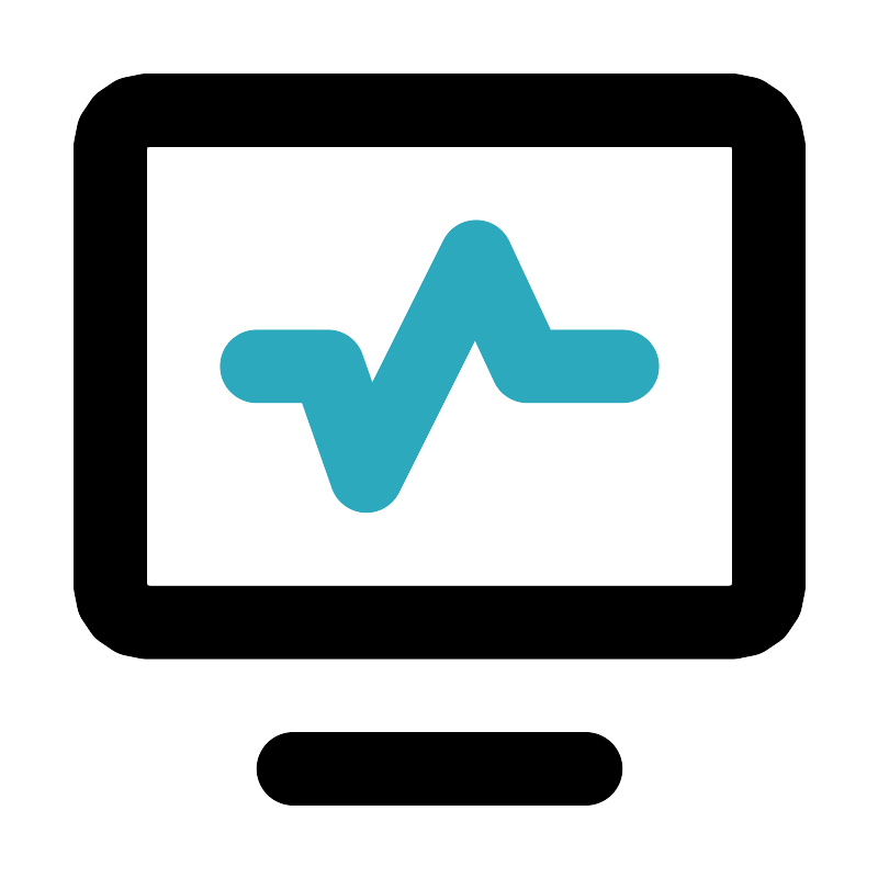 <svg fill="#000000" width="800px" height="800px" viewBox="0 0 24 24" id="electrocardiogram-4" data-name="Line Color" xmlns="http://www.w3.org/2000/svg" class="icon line-color"><polyline id="secondary" points="17 10 14.4 10 13 7 10 13 8.95 10 7 10" style="fill: none; stroke: rgb(44, 169, 188); stroke-linecap: round; stroke-linejoin: round; stroke-width: 2;"></polyline><path id="primary" d="M20,17H4a1,1,0,0,1-1-1V4A1,1,0,0,1,4,3H20a1,1,0,0,1,1,1V16A1,1,0,0,1,20,17ZM8,21h8" style="fill: none; stroke: rgb(0, 0, 0); stroke-linecap: round; stroke-linejoin: round; stroke-width: 2;"></path></svg>