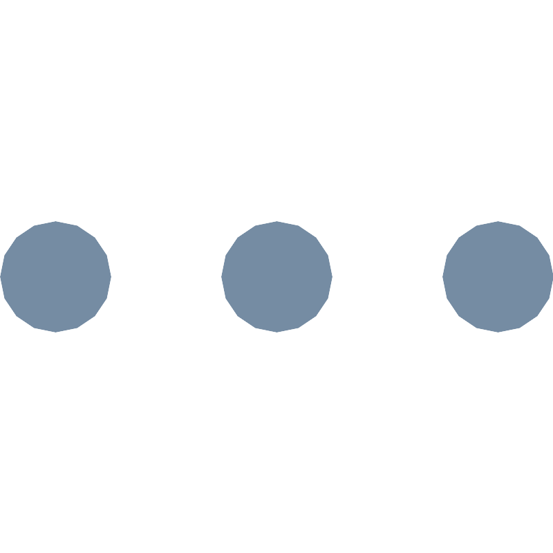 <svg width="800px" height="800px" viewBox="0 -8 20 20" id="meteor-icon-kit__regular-ellipsis-h" fill="none" xmlns="http://www.w3.org/2000/svg"><path fill-rule="evenodd" clip-rule="evenodd" d="M2 4C0.89543 4 0 3.1046 0 2C0 0.8954 0.89543 0 2 0C3.10457 0 4 0.8954 4 2C4 3.1046 3.10457 4 2 4zM10 4C8.8954 4 8 3.1046 8 2C8 0.8954 8.8954 0 10 0C11.1046 0 12 0.8954 12 2C12 3.1046 11.1046 4 10 4zM18 4C16.8954 4 16 3.1046 16 2C16 0.8954 16.8954 0 18 0C19.1046 0 20 0.8954 20 2C20 3.1046 19.1046 4 18 4z" fill="#758CA3"/></svg>