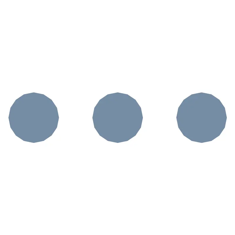 <svg width="800px" height="800px" viewBox="0 -5 14 14" id="meteor-icon-kit__solid-ellipsis-h-s" fill="none" xmlns="http://www.w3.org/2000/svg"><path fill-rule="evenodd" clip-rule="evenodd" d="M10.5 2C10.5 1.1716 11.1716 0.5 12 0.5C12.8284 0.5 13.5 1.1716 13.5 2C13.5 2.8284 12.8284 3.5 12 3.5C11.1716 3.5 10.5 2.8284 10.5 2zM5.5 2C5.5 1.1716 6.1716 0.5 7 0.5C7.8284 0.5 8.5 1.1716 8.5 2C8.5 2.8284 7.8284 3.5 7 3.5C6.1716 3.5 5.5 2.8284 5.5 2zM0.5 2C0.5 1.1716 1.17157 0.5 2 0.5C2.82843 0.5 3.5 1.1716 3.5 2C3.5 2.8284 2.82843 3.5 2 3.5C1.17157 3.5 0.5 2.8284 0.5 2z" fill="#758CA3"/></svg>