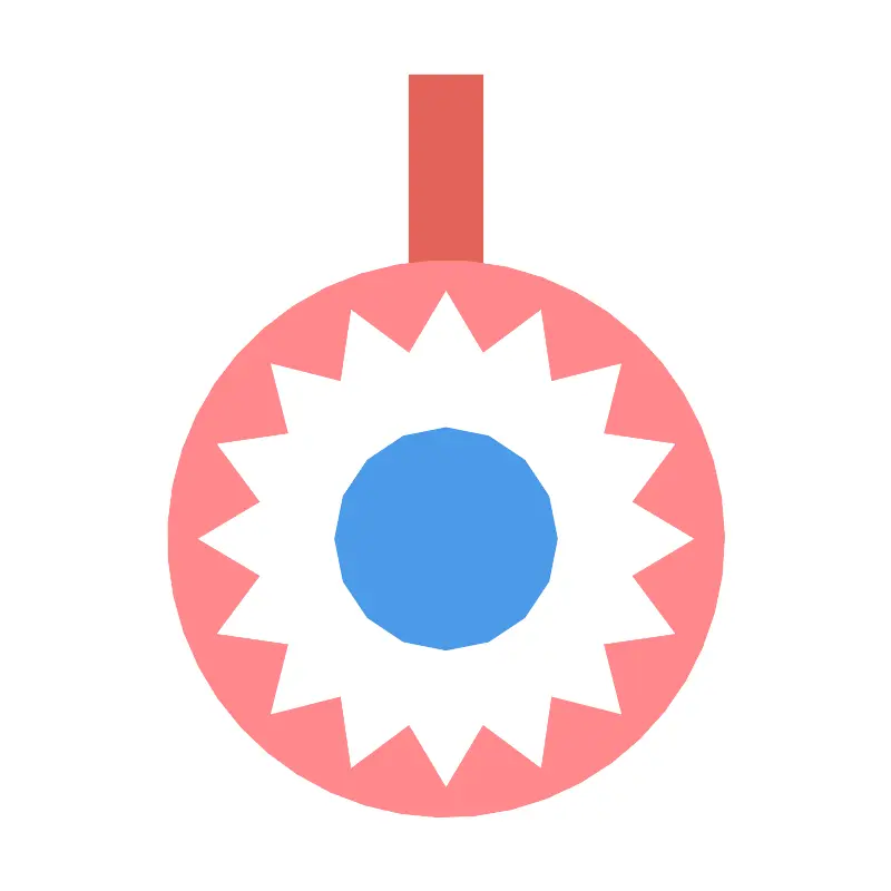 <svg width="800px" height="800px" viewBox="0 0 24 24" data-name="Layer 1" id="Layer_1" xmlns="http://www.w3.org/2000/svg"><title/><rect height="6" style="fill:#e36359" width="2" x="11" y="2"/><circle cx="12" cy="14.5" r="7.5" style="fill:#ff888b"/><polygon points="12 7.833 12.994 9.501 14.551 8.341 14.832 10.262 16.714 9.786 16.238 11.668 18.159 11.949 16.999 13.506 18.667 14.5 16.999 15.494 18.159 17.051 16.238 17.332 16.714 19.214 14.832 18.738 14.551 20.659 12.994 19.499 12 21.167 11.006 19.499 9.449 20.659 9.169 18.738 7.286 19.214 7.762 17.332 5.841 17.051 7.001 15.494 5.333 14.5 7.001 13.506 5.841 11.949 7.762 11.668 7.286 9.786 9.169 10.262 9.449 8.341 11.006 9.501 12 7.833" style="fill:#fff"/><circle cx="12" cy="14.5" r="3" style="fill:#4c9ae8"/><circle cx="10.58576" cy="12.41425" r="1.49998" style="fill:#fff" transform="translate(-5.67771 11.12143) rotate(-45.00041)"/></svg>