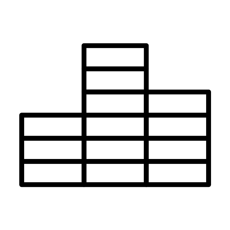 <svg width="800px" height="800px" viewBox="0 0 48 48" xmlns="http://www.w3.org/2000/svg"><defs><style>.a{fill:none;stroke:#000000;stroke-linecap:round;stroke-linejoin:round;}</style></defs><rect class="a" x="4.5" y="33.67" width="13" height="4.83"/><rect class="a" x="4.5" y="28.83" width="13" height="4.83"/><rect class="a" x="4.5" y="24" width="13" height="4.83"/><rect class="a" x="17.5" y="33.67" width="13" height="4.83"/><rect class="a" x="17.5" y="28.83" width="13" height="4.83"/><rect class="a" x="17.5" y="24" width="13" height="4.83"/><rect class="a" x="17.5" y="19.17" width="13" height="4.83"/><rect class="a" x="30.5" y="19.17" width="13" height="4.83"/><rect class="a" x="17.5" y="14.33" width="13" height="4.83"/><rect class="a" x="17.5" y="9.5" width="13" height="4.83"/><rect class="a" x="30.5" y="33.67" width="13" height="4.83"/><rect class="a" x="30.5" y="28.83" width="13" height="4.83"/><rect class="a" x="30.5" y="24" width="13" height="4.83"/></svg>
