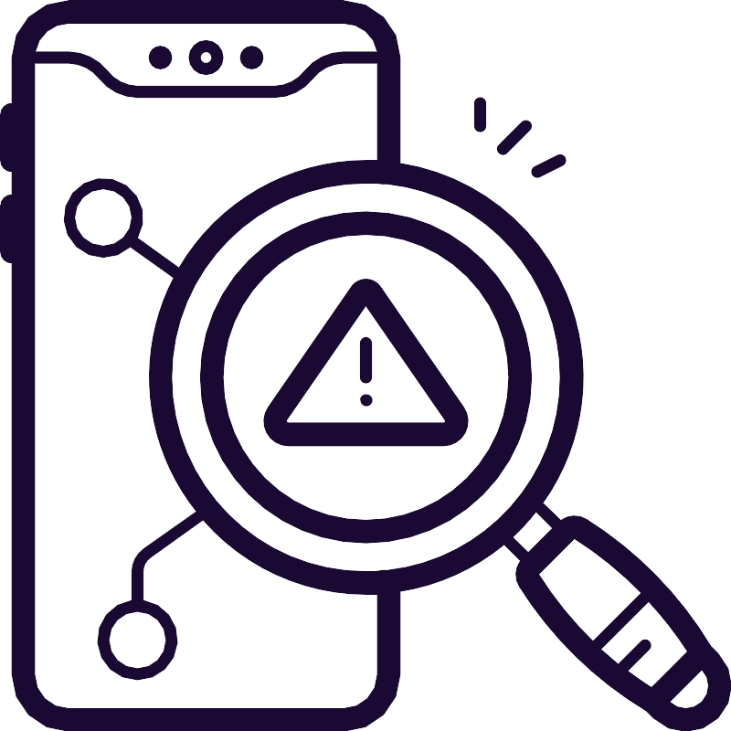 <svg width="800px" height="800px" viewBox="0 0 64 64" data-name="Layer 1" id="Layer_1" xmlns="http://www.w3.org/2000/svg"><defs><style>.cls-1{fill:#190933;}</style></defs><title/><path class="cls-1" d="M18,6.5A1.5,1.5,0,1,0,16.5,5,1.5,1.5,0,0,0,18,6.5Zm0-2a.5.5,0,1,1-.5.5A.5.5,0,0,1,18,4.5Z"/><circle class="cls-1" cx="22" cy="5" r="1"/><circle class="cls-1" cx="14" cy="5" r="1"/><path class="cls-1" d="M32,18.5A14.5,14.5,0,1,0,46.5,33,14.51,14.51,0,0,0,32,18.5Zm0,27A12.5,12.5,0,1,1,44.5,33,12.52,12.52,0,0,1,32,45.5Z"/><path class="cls-1" d="M62.2,56.54A33.69,33.69,0,0,0,51.32,45.43a2,2,0,0,0-2.26.09L47.49,44A18.95,18.95,0,0,0,35,14.26V5a5,5,0,0,0-5-5H6A5,5,0,0,0,1,5V9a1,1,0,0,0-1,1v4a1,1,0,0,0,1,1v2a1,1,0,0,0-1,1v4a1,1,0,0,0,1,1V59a5,5,0,0,0,5,5H30a5,5,0,0,0,5-5V51.74a19,19,0,0,0,9.1-4.1l1.42,1.42a2,2,0,0,0-.09,2.26A33.69,33.69,0,0,0,56.54,62.2l.63.63a4,4,0,0,0,5.66-5.66ZM60.15,57l-1.56,1.57L57,60.15c-.72-.46-1.41-.95-2.08-1.45l1.88-1.88a.5.5,0,0,0-.71-.71l-2,2c-.52-.42-1-.86-1.52-1.31l4.18-4.17A32.45,32.45,0,0,1,60.15,57ZM49,33A17,17,0,0,1,33.89,49.89l-.44,0C33,50,32.49,50,32,50a17,17,0,0,1,0-34c.49,0,1,0,1.45.07l.44,0A17,17,0,0,1,49,33ZM6,2H30a3,3,0,0,1,3,2.5H30a4.34,4.34,0,0,0-3.35,1.65A3.45,3.45,0,0,1,24,7.5H12A3.45,3.45,0,0,1,9.35,6.15,4.34,4.34,0,0,0,6,4.5H3.05A3,3,0,0,1,6,2ZM33,52v7a3,3,0,0,1-3,3H6a3,3,0,0,1-3-3V5.5H6A3.45,3.45,0,0,1,8.65,6.85,4.34,4.34,0,0,0,12,8.5H24a4.34,4.34,0,0,0,3.35-1.65A3.45,3.45,0,0,1,30,5.5h3V14l-1,0a19,19,0,0,0-16.37,9.41L12,20.8a3.46,3.46,0,1,0-.63.78l3.79,2.7a18.87,18.87,0,0,0,2,20.47L12.55,48a2.5,2.5,0,0,0-1.05,2v2.52a3.5,3.5,0,1,0,1,0V50a1.49,1.49,0,0,1,.63-1.22l4.61-3.3A18.94,18.94,0,0,0,32,52ZM9,21.5A2.5,2.5,0,1,1,11.5,19,2.5,2.5,0,0,1,9,21.5Zm3,32A2.5,2.5,0,1,1,9.5,56,2.5,2.5,0,0,1,12,53.5Zm34.89-8.73,1.44,1.44-2.12,2.12L44.84,47A19.26,19.26,0,0,0,46.89,44.77Zm.24,5.47,3.12-3.12a32.12,32.12,0,0,1,5.85,4.76L51.88,56.1A31.73,31.73,0,0,1,47.13,50.24ZM61.41,61.41a2,2,0,0,1-2.82,0l2.82-2.82a2,2,0,0,1,0,2.82Z"/><path class="cls-1" d="M33.23,25a1.55,1.55,0,0,0-2.46,0L23.44,35.61A2.16,2.16,0,0,0,25.21,39H38.79a2.16,2.16,0,0,0,1.77-3.39Zm5.7,11.89a.15.15,0,0,1-.14.09H25.21a.15.15,0,0,1-.14-.09.16.16,0,0,1,0-.16l6.92-10,6.92,10A.16.16,0,0,1,38.93,36.91Z"/><path class="cls-1" d="M32,29.5a.5.5,0,0,0-.5.5v3a.5.5,0,0,0,1,0V30A.5.5,0,0,0,32,29.5Z"/><path class="cls-1" d="M32.19,34.54a.5.5,0,0,0-.38,0,.53.53,0,0,0-.27.27.43.43,0,0,0,0,.19.47.47,0,0,0,.15.35.36.36,0,0,0,.16.11.47.47,0,0,0,.38,0,.36.36,0,0,0,.16-.11.48.48,0,0,0,0-.7A.36.36,0,0,0,32.19,34.54Z"/><path class="cls-1" d="M43.65,13.35a.48.48,0,0,0,.7,0l2-2a.49.49,0,1,0-.7-.7l-2,2A.48.48,0,0,0,43.65,13.35Z"/><path class="cls-1" d="M48.78,13.55l-2,1a.5.5,0,0,0,.22.95.54.54,0,0,0,.22-.05l2-1a.5.5,0,0,0-.44-.9Z"/><path class="cls-1" d="M42.5,11V9a.5.5,0,0,0-1,0v2a.5.5,0,0,0,1,0Z"/></svg>