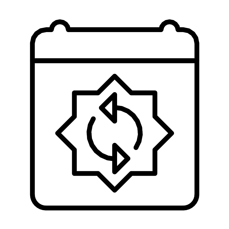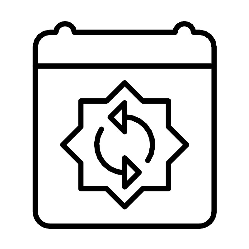 <svg width="800px" height="800px" viewBox="0 0 48 48" id="Layer_2" data-name="Layer 2" xmlns="http://www.w3.org/2000/svg"><defs><style>.cls-1{fill:none;stroke:#000000;stroke-linecap:round;stroke-linejoin:round;}</style></defs><path class="cls-1" d="M24,15.94l-3.5,3.5H15.56v4.95l-3.5,3.5,3.5,3.49v4.95H20.5l3.5,3.5,3.5-3.5h4.94V31.38l3.5-3.49-3.5-3.5V19.44H27.5Z"/><path class="cls-1" d="M38.36,6.19H37.29a1.79,1.79,0,0,0-3.57,0H14.3a1.79,1.79,0,0,0-3.57,0H9.66A2.88,2.88,0,0,0,6.76,9v3.68H41.24V9.06a2.87,2.87,0,0,0-2.86-2.87Z"/><path class="cls-1" d="M41.24,12.71H6.76v28a2.85,2.85,0,0,0,2.86,2.86H38.36a2.86,2.86,0,0,0,2.88-2.85h0Z"/><path class="cls-1" d="M28.47,30.9A5.39,5.39,0,0,0,24,22.5"/><path class="cls-1" d="M19.53,24.87A5.4,5.4,0,0,0,24,33.28"/><polygon class="cls-1" points="24 23.33 24 25.36 21.21 22.57 24 19.79 24 19.79 24 21.81 24 23.33"/><polygon class="cls-1" points="24 32.44 24 30.42 26.79 33.2 24 35.99 24 33.96 24 32.44"/></svg>