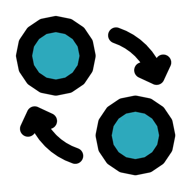 <svg fill="#000000" width="800px" height="800px" viewBox="0 0 24 24" id="exchange-5" data-name="Flat Line" xmlns="http://www.w3.org/2000/svg" class="icon flat-line"><path id="secondary" d="M7,3a4,4,0,1,0,4,4A4,4,0,0,0,7,3ZM17,21a4,4,0,1,0-4-4A4,4,0,0,0,17,21Z" style="fill: rgb(44, 169, 188); stroke-width: 2;"></path><path id="primary" d="M14.57,4.43a8,8,0,0,1,3.09,1.91,8.13,8.13,0,0,1,2,3.3" style="fill: none; stroke: rgb(0, 0, 0); stroke-linecap: round; stroke-linejoin: round; stroke-width: 2;"></path><polyline id="primary-2" data-name="primary" points="17.85 8.81 19.66 9.65 20.5 7.84" style="fill: none; stroke: rgb(0, 0, 0); stroke-linecap: round; stroke-linejoin: round; stroke-width: 2;"></polyline><path id="primary-3" data-name="primary" d="M4.35,14.36a8.13,8.13,0,0,0,2,3.3,8,8,0,0,0,3.09,1.91" style="fill: none; stroke: rgb(0, 0, 0); stroke-linecap: round; stroke-linejoin: round; stroke-width: 2;"></path><polyline id="primary-4" data-name="primary" points="6.15 15.19 4.34 14.35 3.5 16.16" style="fill: none; stroke: rgb(0, 0, 0); stroke-linecap: round; stroke-linejoin: round; stroke-width: 2;"></polyline><path id="primary-5" data-name="primary" d="M7,3a4,4,0,1,0,4,4A4,4,0,0,0,7,3ZM17,21a4,4,0,1,0-4-4A4,4,0,0,0,17,21Z" style="fill: none; stroke: rgb(0, 0, 0); stroke-linecap: round; stroke-linejoin: round; stroke-width: 2;"></path></svg>