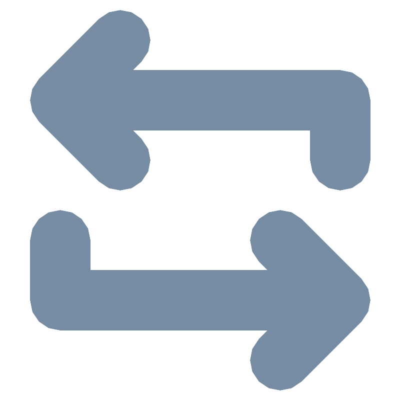 <svg width="800px" height="800px" viewBox="-1 0 20 20" id="meteor-icon-kit__solid-exchange-alt-s" fill="none" xmlns="http://www.w3.org/2000/svg"><path fill-rule="evenodd" clip-rule="evenodd" d="M5.62132 6.5L6.06066 6.93934C6.64645 7.52513 6.64645 8.4749 6.06066 9.0607C5.47487 9.6464 4.52513 9.6464 3.93934 9.0607L0.93934 6.06066C0.35355 5.47487 0.35355 4.52513 0.93934 3.93934L3.93934 0.93934C4.52513 0.35355 5.47487 0.35355 6.06066 0.93934C6.64645 1.52513 6.64645 2.47487 6.06066 3.06066L5.62132 3.5H16C16.8284 3.5 17.5 4.17157 17.5 5V8C17.5 8.8284 16.8284 9.5 16 9.5C15.1716 9.5 14.5 8.8284 14.5 8V6.5H5.62132zM12.3787 13.5L11.9393 13.0607C11.3536 12.4749 11.3536 11.5251 11.9393 10.9393C12.5251 10.3536 13.4749 10.3536 14.0607 10.9393L17.0607 13.9393C17.6464 14.5251 17.6464 15.4749 17.0607 16.0607L14.0607 19.0607C13.4749 19.6464 12.5251 19.6464 11.9393 19.0607C11.3536 18.4749 11.3536 17.5251 11.9393 16.9393L12.3787 16.5H2C1.17157 16.5 0.5 15.8284 0.5 15V12C0.5 11.1716 1.17157 10.5 2 10.5C2.82843 10.5 3.5 11.1716 3.5 12V13.5H12.3787z" fill="#758CA3"/></svg>