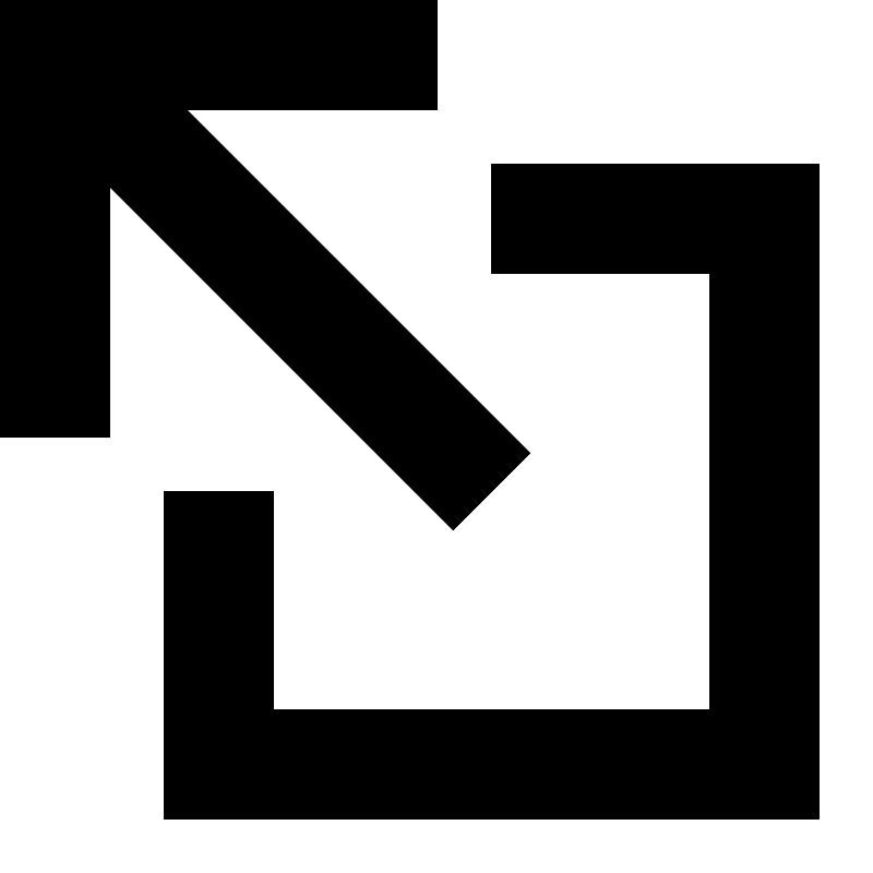 <path d="M13,13H5V9H3v6h12V3H9v2h4V13z M2,8V3.413l6.294,6.294l1.413-1.413L3.412,2H8V0L0,0l0,8H2z" />