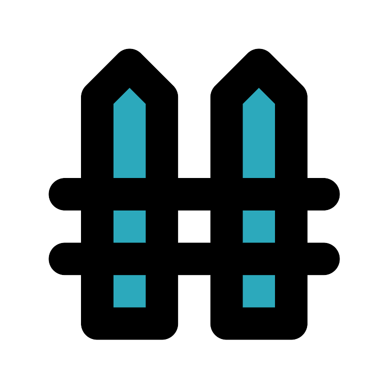 <svg fill="#000000" width="800px" height="800px" viewBox="0 0 24 24" id="fence" data-name="Flat Line" xmlns="http://www.w3.org/2000/svg" class="icon flat-line"><path id="secondary" d="M8,4,6,6V20h4V6Zm6,2V20h4V6L16,4Z" style="fill: rgb(44, 169, 188); stroke-width: 2;"></path><path id="primary" d="M8,4,6,6V20h4V6Zm6,2V20h4V6L16,4ZM4,12H20M4,16H20" style="fill: none; stroke: rgb(0, 0, 0); stroke-linecap: round; stroke-linejoin: round; stroke-width: 2;"></path></svg>