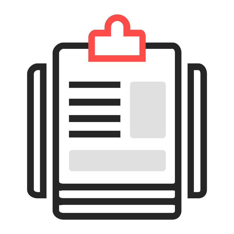 <svg width="800px" height="800px" viewBox="0 0 1024 1024" class="icon" version="1.1" xmlns="http://www.w3.org/2000/svg"><path d="M118.270018 322.592478V828.459405c0 23.246292 22.388277 38.379318 45.634569 38.379317h38.324027v-589.757947h-38.324027c-23.245269 0-45.634569 22.26541-45.634569 45.511703z m56.313693 517.625226h-10.679124c-7.746716 0-16.96578-4.008511-16.96578-11.758299V322.592478c0-7.749788 9.219063-16.842914 16.96578-16.842914h10.679124v534.46814zM754.082327 185.954981h-117.726335v26.621018h117.726335c7.746716 0 11.283216 10.928952 11.283216 18.67874V793.329899c0 7.749788-3.5365 10.027933-11.283216 10.027933H276.320028c-7.746716 0-18.800582-2.279169-18.800582-10.027933V231.255763c0-7.749788 11.05489-18.67874 18.800582-18.67874h110.208969v-26.621018H276.320028c-23.246292 0-46.445486 22.05449-46.445486 45.299758v688.54138c0 23.246292 23.200218 40.216168 46.445486 40.216168h477.763323c23.246292 0 38.92812-16.969875 38.92812-40.216168V231.255763c-0.001024-23.246292-15.682852-45.300782-38.929144-45.300782z m0 745.388517H276.320028c-7.746716 0-18.800582-3.797591-18.800582-11.547379v-23.537076c7.167197 1.563473 13.867503-0.751532 18.800582-0.751532h477.763323c4.933079 0 11.283216 2.315005 11.283216 0.751532v23.537076c-0.001024 7.749788-3.537524 11.547379-11.28424 11.547379z m0-64.504776H276.320028c-7.746716 0-18.800582-2.525925-18.800582-10.275713V833.025933c7.167197 1.563473 13.867503-0.999312 18.800582-0.999312h477.763323c4.933079 0 11.283216 2.562785 11.283216 0.999312v23.537076c-0.001024 7.749788-3.537524 10.275713-11.28424 10.275713zM866.497768 277.080775h-45.842417v589.757947h45.842417c23.246292 0 38.116179-15.134049 38.116179-38.379317V322.592478c0-23.246292-14.869887-45.511703-38.116179-45.511703zM876.969043 828.459405c0 7.749788-2.725583 11.758299-10.471275 11.758299h-19.221399v-534.46814h19.221399c7.746716 0 10.471275 9.093126 10.471275 16.842914V828.459405z" fill="#262626" /><path d="M301.545491 356.94383h224.230886v26.621019h-224.230886zM301.545491 571.959749h224.230886v28.668789h-224.230886zM301.545491 503.359432h224.230886v29.692674h-224.230886zM301.545491 431.687459h224.230886v29.692674h-224.230886z" fill="#262626" /><path d="M724.41013 734.016222c0 7.761051-6.290751 14.051802-14.051802 14.051802H315.597293c-7.761051 0-14.051802-6.290751-14.051802-14.051802v-64.046075c0-7.761051 6.290751-14.051802 14.051802-14.051802h394.761035c7.761051 0 14.051802 6.290751 14.051802 14.051802v64.046075zM724.41013 589.648391c0 7.761051-6.290751 14.051802-14.051802 14.051803H582.831363c-7.761051 0-14.051802-6.290751-14.051802-14.051803V370.995632c0-7.761051 6.290751-14.051802 14.051802-14.051802h127.526965c7.761051 0 14.051802 6.290751 14.051802 14.051802V589.648391z" fill="#E0E0E0" /><path d="M636.355992 268.889692h-249.828019V160.996752c0-15.496504 14.810501-31.35444 30.310077-31.35444h40.33801v-10.80199c0-30.991985 24.809765-56.207209 55.80175-56.207209s55.80175 25.215224 55.801751 56.207209v10.800966h44.784744c15.499576 0 22.791687 15.857936 22.791687 31.35444v107.893964z m-222.183115-27.644903h195.562097v-82.934712h-69.624202V118.840322c0-15.496504-12.145328-28.103604-27.644904-28.103605s-27.644904 12.6071-27.644904 28.103605v39.469755h-70.648087v82.934712z" fill="#FF4C48" /></svg>