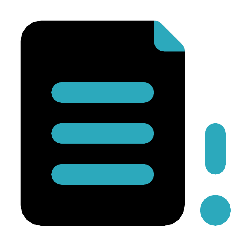 <svg fill="#000000" width="800px" height="800px" viewBox="0 0 24 24" id="file-corrupt" data-name="Flat Color" xmlns="http://www.w3.org/2000/svg" class="icon flat-color"><path id="primary" d="M17.71,4.29l-2-2A1,1,0,0,0,15,2H4A2,2,0,0,0,2,4V20a2,2,0,0,0,2,2H16a2,2,0,0,0,2-2V5A1,1,0,0,0,17.71,4.29Z" style="fill: rgb(0, 0, 0);"></path><path id="secondary" d="M18,5H16a1,1,0,0,1-1-1V2a1,1,0,0,1,.71.29l2,2A1,1,0,0,1,18,5ZM15,17a1,1,0,0,0-1-1H6a1,1,0,0,0,0,2h8A1,1,0,0,0,15,17Zm0-4a1,1,0,0,0-1-1H6a1,1,0,0,0,0,2h8A1,1,0,0,0,15,13Zm0-4a1,1,0,0,0-1-1H6a1,1,0,0,0,0,2h8A1,1,0,0,0,15,9Zm6,10a1.5,1.5,0,1,0,1.5,1.5A1.5,1.5,0,0,0,21,19Zm1-3V13a1,1,0,0,0-2,0v3a1,1,0,0,0,2,0Z" style="fill: rgb(44, 169, 188);"></path></svg>