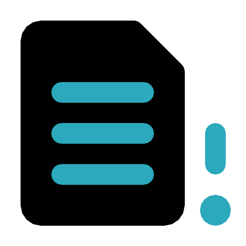 <svg fill="#000000" width="800px" height="800px" viewBox="0 0 24 24" id="file-corrupt-2" data-name="Flat Color" xmlns="http://www.w3.org/2000/svg" class="icon flat-color"><path id="primary" d="M17.71,6.29l-4-4A1,1,0,0,0,13,2H4A2,2,0,0,0,2,4V20a2,2,0,0,0,2,2H16a2,2,0,0,0,2-2V7A1,1,0,0,0,17.71,6.29Z" style="fill: rgb(0, 0, 0);"></path><path id="secondary" d="M22.5,20.5A1.5,1.5,0,1,1,21,19,1.5,1.5,0,0,1,22.5,20.5ZM22,16V13a1,1,0,0,0-2,0v3a1,1,0,0,0,2,0Zm-7,1a1,1,0,0,0-1-1H6a1,1,0,0,0,0,2h8A1,1,0,0,0,15,17Zm0-4a1,1,0,0,0-1-1H6a1,1,0,0,0,0,2h8A1,1,0,0,0,15,13Zm0-4a1,1,0,0,0-1-1H6a1,1,0,0,0,0,2h8A1,1,0,0,0,15,9Z" style="fill: rgb(44, 169, 188);"></path></svg>