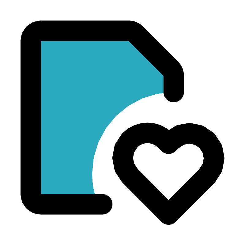 <svg fill="#000000" width="800px" height="800px" viewBox="0 0 24 24" id="file-favorite" data-name="Flat Line" xmlns="http://www.w3.org/2000/svg" class="icon flat-line"><path id="secondary" d="M17,7.41V9a8,8,0,0,0-8,8,8.09,8.09,0,0,0,.58,3H3.93A1,1,0,0,1,3,19V4a1,1,0,0,1,.93-1h9a.92.92,0,0,1,.66.29l3.19,3.42A1,1,0,0,1,17,7.41Z" style="fill: rgb(44, 169, 188); stroke-width: 2;"></path><path id="primary" d="M16.84,13.72l-.34.34-.34-.34a2.43,2.43,0,0,0-3.45,0,2.47,2.47,0,0,0,0,3.47l1,1L16.5,21l2.75-2.77,1-1a2.47,2.47,0,0,0,0-3.47A2.43,2.43,0,0,0,16.84,13.72Z" style="fill: none; stroke: rgb(0, 0, 0); stroke-linecap: round; stroke-linejoin: round; stroke-width: 2;"></path><path id="primary-2" data-name="primary" d="M10,20H4a1,1,0,0,1-1-1V4A1,1,0,0,1,4,3h8.59a1,1,0,0,1,.7.29l3.42,3.42a1,1,0,0,1,.29.7V9" style="fill: none; stroke: rgb(0, 0, 0); stroke-linecap: round; stroke-linejoin: round; stroke-width: 2;"></path></svg>