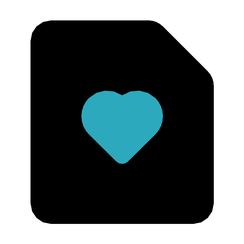 <svg fill="#000000" width="800px" height="800px" viewBox="0 0 24 24" id="file-favorite-alt" data-name="Flat Color" xmlns="http://www.w3.org/2000/svg" class="icon flat-color"><path id="primary" d="M20.41,7,16,2.59A2,2,0,0,0,14.59,2H5A2,2,0,0,0,3,4V20a2,2,0,0,0,2,2H19a2,2,0,0,0,2-2V8.41A2,2,0,0,0,20.41,7Z" style="fill: rgb(0, 0, 0);"></path><path id="secondary" d="M15.26,9.63A2.56,2.56,0,0,0,12,9.37a2.56,2.56,0,0,0-3.26.26,2.52,2.52,0,0,0,0,3.57l2.7,2.67a.8.8,0,0,0,1.12,0l2.7-2.67a2.52,2.52,0,0,0,0-3.57Z" style="fill: rgb(44, 169, 188);"></path></svg>