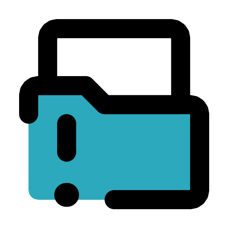 <svg fill="#000000" width="800px" height="800px" viewBox="0 0 24 24" id="file-folder-alert-left" data-name="Flat Line" xmlns="http://www.w3.org/2000/svg" class="icon flat-line"><path id="secondary" d="M20,11H11L9,9H4a1,1,0,0,0-1,1V20a1,1,0,0,0,1,1H20a1,1,0,0,0,1-1V12A1,1,0,0,0,20,11Z" style="fill: rgb(44, 169, 188); stroke-width: 2;"></path><line id="primary-upstroke" x1="7.05" y1="20.5" x2="6.95" y2="20.5" style="fill: none; stroke: rgb(0, 0, 0); stroke-linecap: round; stroke-linejoin: round; stroke-width: 2.5;"></line><path id="primary" d="M12,21h8a1,1,0,0,0,1-1V12a1,1,0,0,0-1-1H11L9,9H4a1,1,0,0,0-1,1v2" style="fill: none; stroke: rgb(0, 0, 0); stroke-linecap: round; stroke-linejoin: round; stroke-width: 2;"></path><path id="primary-2" data-name="primary" d="M9,9l2,2h8V4a1,1,0,0,0-1-1H6A1,1,0,0,0,5,4V9ZM7,13v3" style="fill: none; stroke: rgb(0, 0, 0); stroke-linecap: round; stroke-linejoin: round; stroke-width: 2;"></path></svg>