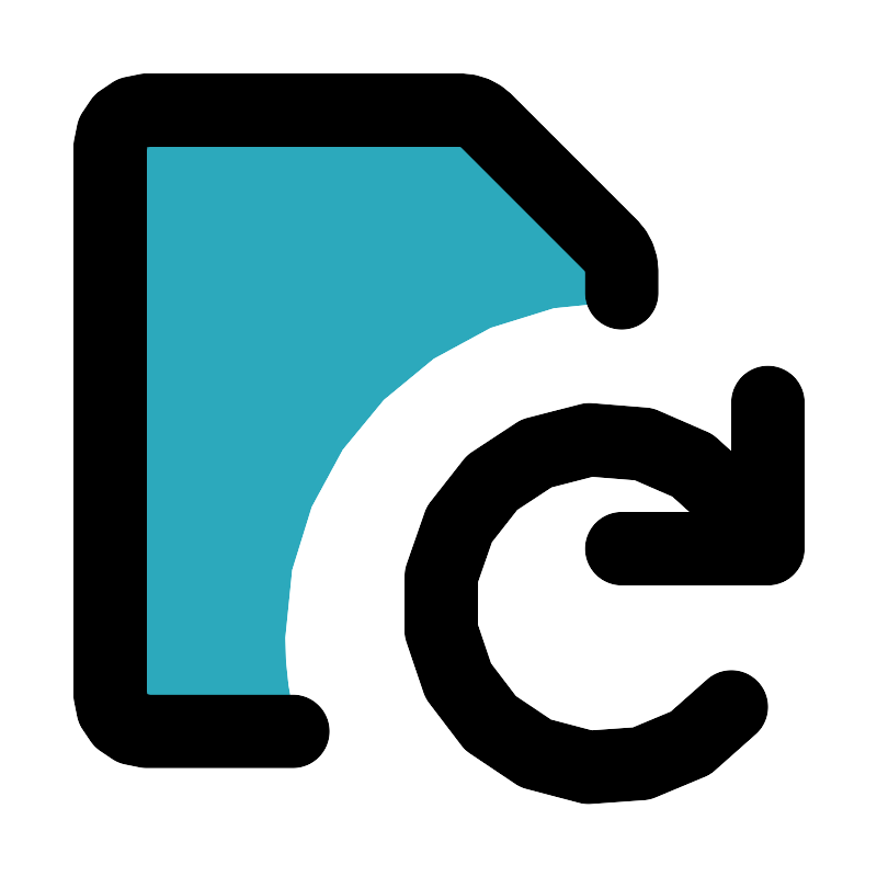 <svg fill="#000000" width="800px" height="800px" viewBox="0 0 24 24" id="file-reload" data-name="Flat Line" xmlns="http://www.w3.org/2000/svg" class="icon flat-line"><path id="secondary" d="M17,7.41v.81a9.22,9.22,0,0,0-9.22,9.22A9,9,0,0,0,8.14,20H3.93A1,1,0,0,1,3,19V4a1,1,0,0,1,.93-1h9a.92.92,0,0,1,.66.29l3.19,3.42A1,1,0,0,1,17,7.41Z" style="fill: rgb(44, 169, 188); stroke-width: 2;"></path><polyline id="primary" points="17 15 21 15 21 11" style="fill: none; stroke: rgb(0, 0, 0); stroke-linecap: round; stroke-linejoin: round; stroke-width: 2;"></polyline><path id="primary-2" data-name="primary" d="M20,19.33A4.5,4.5,0,1,1,20.74,15" style="fill: none; stroke: rgb(0, 0, 0); stroke-linecap: round; stroke-linejoin: round; stroke-width: 2;"></path><path id="primary-3" data-name="primary" d="M8,20H4a1,1,0,0,1-1-1V4A1,1,0,0,1,4,3h8.59a1,1,0,0,1,.7.29l3.42,3.42a1,1,0,0,1,.29.7V8" style="fill: none; stroke: rgb(0, 0, 0); stroke-linecap: round; stroke-linejoin: round; stroke-width: 2;"></path></svg>