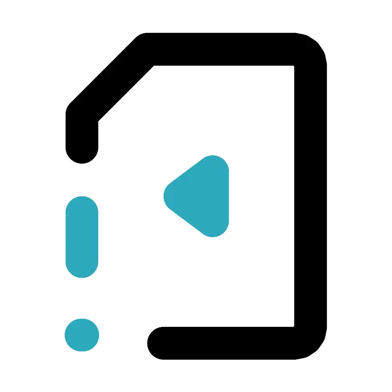 <svg fill="#000000" width="800px" height="800px" viewBox="0 0 24 24" id="file-video-alert-left" data-name="Line Color" xmlns="http://www.w3.org/2000/svg" class="icon line-color"><line id="secondary-upstroke" x1="5.05" y1="20.5" x2="4.95" y2="20.5" style="fill: none; stroke: rgb(44, 169, 188); stroke-linecap: round; stroke-linejoin: round; stroke-width: 2;"></line><path id="secondary" d="M13,13.5v-3L11,12ZM5,13v3" style="fill: none; stroke: rgb(44, 169, 188); stroke-linecap: round; stroke-linejoin: round; stroke-width: 2;"></path><path id="primary" d="M5,9V7L9,3h9a1,1,0,0,1,1,1V20a1,1,0,0,1-1,1H10" style="fill: none; stroke: rgb(0, 0, 0); stroke-linecap: round; stroke-linejoin: round; stroke-width: 2;"></path></svg>