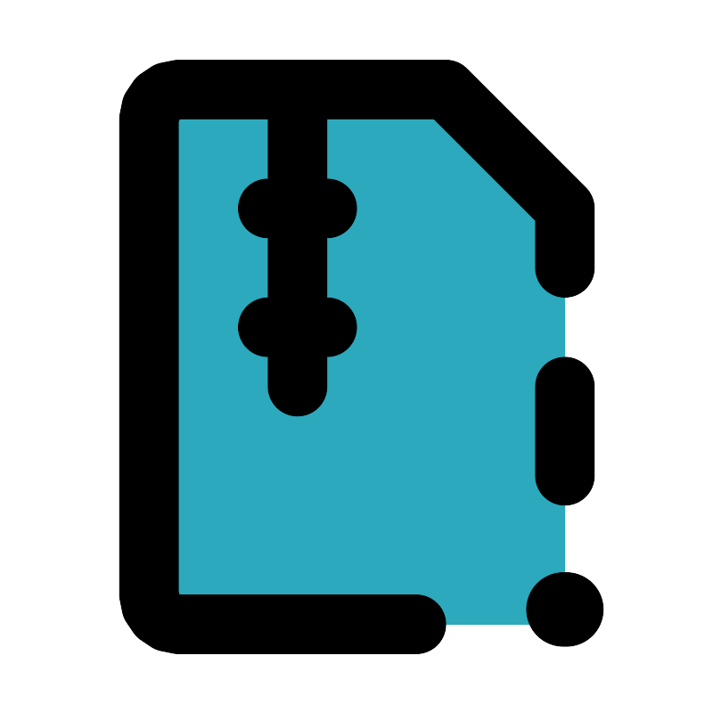 <svg fill="#000000" width="800px" height="800px" viewBox="0 0 24 24" id="file-zip-alert" data-name="Flat Line" xmlns="http://www.w3.org/2000/svg" class="icon flat-line"><path id="secondary" d="M18,21a1,1,0,0,0,1-1V7L15,3H6A1,1,0,0,0,5,4V20a1,1,0,0,0,1,1Z" style="fill: rgb(44, 169, 188); stroke-width: 2;"></path><line id="primary-upstroke" x1="18.95" y1="20.5" x2="19.05" y2="20.5" style="fill: none; stroke: rgb(0, 0, 0); stroke-linecap: round; stroke-linejoin: round; stroke-width: 2.5;"></line><path id="primary" d="M10,3V13M9,7h2M9,11h2m8,5V13" style="fill: none; stroke: rgb(0, 0, 0); stroke-linecap: round; stroke-linejoin: round; stroke-width: 2;"></path><path id="primary-2" data-name="primary" d="M14,21H6a1,1,0,0,1-1-1V4A1,1,0,0,1,6,3h9l4,4V9" style="fill: none; stroke: rgb(0, 0, 0); stroke-linecap: round; stroke-linejoin: round; stroke-width: 2;"></path></svg>