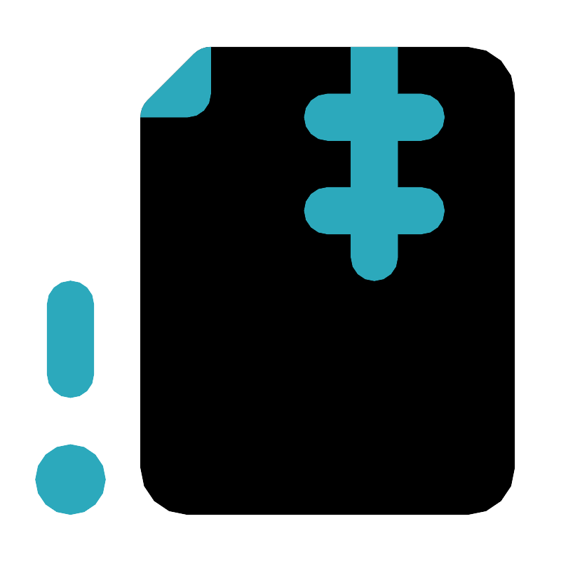 <svg fill="#000000" width="800px" height="800px" viewBox="0 0 24 24" id="file-zip-error-left" data-name="Flat Color" xmlns="http://www.w3.org/2000/svg" class="icon flat-color"><path id="primary" d="M6.29,4.29l2-2A1,1,0,0,1,9,2H20a2,2,0,0,1,2,2V20a2,2,0,0,1-2,2H8a2,2,0,0,1-2-2V5A1,1,0,0,1,6.29,4.29Z" style="fill: rgb(0, 0, 0);"></path><path id="secondary" d="M6.29,4.29l2-2A1,1,0,0,1,9,2V4A1,1,0,0,1,8,5H6A1,1,0,0,1,6.29,4.29ZM1.5,20.5A1.5,1.5,0,1,0,3,19,1.5,1.5,0,0,0,1.5,20.5ZM3,17a1,1,0,0,0,1-1V13a1,1,0,0,0-2,0v3A1,1,0,0,0,3,17ZM14,6h1V8H14a1,1,0,0,0-1,1h0a1,1,0,0,0,1,1h1v1a1,1,0,0,0,2,0V10h1a1,1,0,0,0,1-1h0a1,1,0,0,0-1-1H17V6h1a1,1,0,0,0,1-1h0a1,1,0,0,0-1-1H17V2H15V4H14a1,1,0,0,0-1,1h0A1,1,0,0,0,14,6Z" style="fill: rgb(44, 169, 188);"></path></svg>