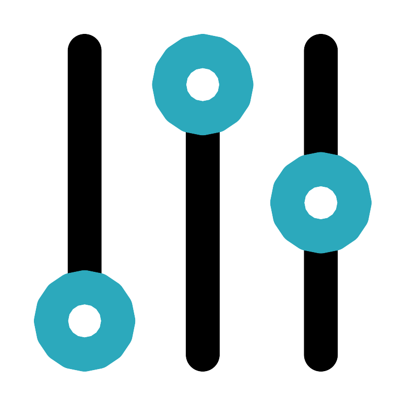 <svg fill="#000000" width="800px" height="800px" viewBox="0 0 24 24" id="filter-alt" data-name="Line Color" xmlns="http://www.w3.org/2000/svg" class="icon line-color"><path id="primary" d="M5,3V17M12,7V21m7-7v7m0-11V3" style="fill: none; stroke: rgb(0, 0, 0); stroke-linecap: round; stroke-linejoin: round; stroke-width: 2;"></path><path id="secondary" d="M5,17a2,2,0,1,0,2,2A2,2,0,0,0,5,17ZM12,3a2,2,0,1,0,2,2A2,2,0,0,0,12,3Zm7,7a2,2,0,1,0,2,2A2,2,0,0,0,19,10Z" style="fill: none; stroke: rgb(44, 169, 188); stroke-linecap: round; stroke-linejoin: round; stroke-width: 2;"></path></svg>