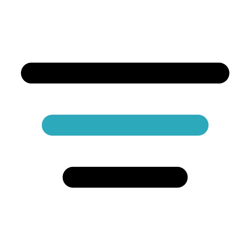 <svg fill="#000000" width="800px" height="800px" viewBox="0 0 24 24" id="filter-alt-2" xmlns="http://www.w3.org/2000/svg" class="icon multi-color"><line id="secondary-stroke" x1="5" y1="12" x2="19" y2="12" style="fill: none; stroke: rgb(44, 169, 188); stroke-linecap: round; stroke-linejoin: round; stroke-width: 2;"></line><path id="primary-stroke" d="M3,7H21M7,17H17" style="fill: none; stroke: rgb(0, 0, 0); stroke-linecap: round; stroke-linejoin: round; stroke-width: 2;"></path></svg>