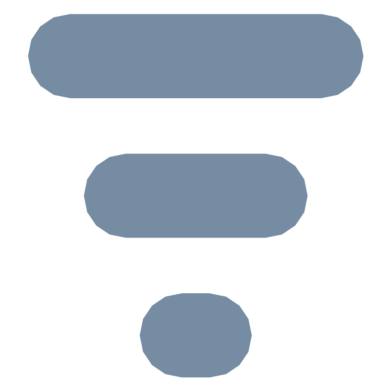 <svg width="800px" height="800px" viewBox="-1 0 14 14" id="meteor-icon-kit__solid-filter-s" fill="none" xmlns="http://www.w3.org/2000/svg"><path fill-rule="evenodd" clip-rule="evenodd" d="M1.5 3.5C0.67157 3.5 0 2.82843 0 2C0 1.17157 0.67157 0.5 1.5 0.5H10.5C11.3284 0.5 12 1.17157 12 2C12 2.82843 11.3284 3.5 10.5 3.5H1.5zM3.5 8.5C2.67157 8.5 2 7.8284 2 7C2 6.1716 2.67157 5.5 3.5 5.5H8.5C9.3284 5.5 10 6.1716 10 7C10 7.8284 9.3284 8.5 8.5 8.5H3.5zM5.5 13.5C4.6716 13.5 4 12.8284 4 12C4 11.1716 4.6716 10.5 5.5 10.5H6.5C7.3284 10.5 8 11.1716 8 12C8 12.8284 7.3284 13.5 6.5 13.5H5.5z" fill="#758CA3"/></svg>