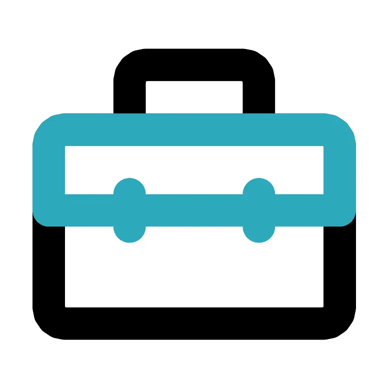 <svg fill="#000000" width="800px" height="800px" viewBox="0 0 24 24" id="first-aid-kit-3" data-name="Line Color" xmlns="http://www.w3.org/2000/svg" class="icon line-color"><path id="primary" d="M21,19V9a1,1,0,0,0-1-1H4A1,1,0,0,0,3,9V19a1,1,0,0,0,1,1H20A1,1,0,0,0,21,19ZM16,8V5a1,1,0,0,0-1-1H9A1,1,0,0,0,8,5V8Z" style="fill: none; stroke: rgb(0, 0, 0); stroke-linecap: round; stroke-linejoin: round; stroke-width: 2;"></path><path id="secondary" d="M21,13V9a1,1,0,0,0-1-1H4A1,1,0,0,0,3,9v4Zm-5,1V12M8,14V12" style="fill: none; stroke: rgb(44, 169, 188); stroke-linecap: round; stroke-linejoin: round; stroke-width: 2;"></path></svg>