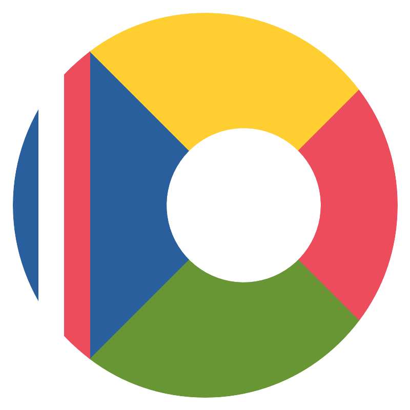 <svg width="800px" height="800px" viewBox="0 0 64 64" xmlns="http://www.w3.org/2000/svg" xmlns:xlink="http://www.w3.org/1999/xlink" aria-hidden="true" role="img" class="iconify iconify--emojione" preserveAspectRatio="xMidYMid meet"><path fill="#2a5f9e" d="M14 8v48l24-24z"></path><path d="M56 14C50.5 6.7 41.8 2 32 2c-6.8 0-13 2.2-18 6l24 24l18-18" fill="#ffce31"></path><path d="M56 50c3.8-5 6-11.2 6-18c0-6.8-2.2-13-6-18L38 32l18 18" fill="#ed4c5c"></path><path d="M38 32L14 56c5 3.8 11.2 6 18 6c9.8 0 18.5-4.7 24-12L38 32z" fill="#699635"></path><path d="M6 17c-2.5 4.4-4 9.5-4 15s1.5 10.6 4 15V17" fill="#2a5f9e"></path><path d="M6 17v30c1.1 2 2.5 3.8 4 5.4V11.6c-1.5 1.7-2.9 3.5-4 5.4" fill="#ffffff"></path><path d="M10 11.6v40.8c1.2 1.3 2.6 2.5 4 3.6V8c-1.4 1.1-2.8 2.3-4 3.6" fill="#ed4c5c"></path><circle cx="38" cy="32" r="12" fill="#ffffff"></circle></svg>