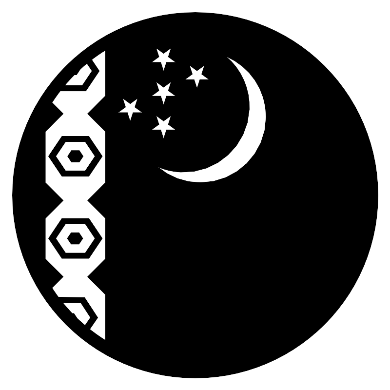 <svg width="800px" height="800px" viewBox="0 0 64 64" xmlns="http://www.w3.org/2000/svg" xmlns:xlink="http://www.w3.org/1999/xlink" aria-hidden="true" role="img" class="iconify iconify--emojione-monotone" preserveAspectRatio="xMidYMid meet"><path d="M16.758 25.608l-2.212-3.29h-4.425l-2.213 3.29l2.213 3.29h4.425l2.212-3.29m-6.03 2.388l-1.605-2.388l1.605-2.388h3.212l1.605 2.388l-1.605 2.388h-3.212" fill="#000000"></path><path d="M11.689 24.652l-.642.956l.642.956h1.288l.641-.956l-.641-.956z" fill="#000000"></path><path d="M16.758 39.085l-2.212-3.292h-4.425l-2.213 3.292l2.213 3.29h4.425l2.212-3.29m-6.03 2.388l-1.605-2.388l1.605-2.39h3.212l1.605 2.39l-1.605 2.388h-3.212" fill="#000000"></path><path d="M11.638 38.129l-.643.956l.643.954h1.285l.643-.954l-.643-.956z" fill="#000000"></path><path d="M32 2C15.432 2 2 15.432 2 32s13.432 30 30 30s30-13.432 30-30S48.568 2 32 2M12.086 51.381h-.266a27.945 27.945 0 0 1-1.557-1.757l2.959.038l1.575 2.408l-.885 1.279c-.44-.373-.868-.762-1.285-1.161l-.541-.807m3.926.704l-2.171-3.318l-4.292-.054A27.85 27.85 0 0 1 8.51 47.21l1.836-1.837l-2.929-2.929v-6.661l2.929-2.929l-2.929-2.931v-8.368l2.929-2.931l-1.836-1.835c.422-.648.868-1.277 1.34-1.888h4.205l2.212-3.29l-1.247-1.853a27.88 27.88 0 0 1 2.23-1.543v7.481l-2.931 2.929l2.931 2.931v8.368l-2.931 2.931l2.931 2.929v6.661l-2.931 2.929l2.931 2.931v7.481a27.92 27.92 0 0 1-2.555-1.797l1.317-1.904m16.831-22.161c-2.665 0-5.104-.968-6.986-2.571c1.163.499 2.437.803 3.777.86c5.948.259 10.981-4.354 11.241-10.302a10.762 10.762 0 0 0-3.783-8.68c3.843 1.65 6.533 5.466 6.533 9.91c0 5.955-4.828 10.783-10.782 10.783M25.587 7.851l1.222.888l1.222-.888l-.467 1.437l1.222.888h-1.51l-.467 1.437l-.467-1.437h-1.51l1.222-.888l-.467-1.437m0 5.546l1.222.888l1.222-.888l-.467 1.437l1.222.888h-1.51l-.467 1.435l-.467-1.435h-1.51l1.222-.888l-.467-1.437m0 5.547l1.222.887l1.222-.887l-.467 1.435l1.222.887h-1.51l-.467 1.437l-.467-1.437h-1.51l1.222-.887l-.467-1.435m5.477-8.251l1.222.887l1.222-.887l-.465 1.437l1.222.888h-1.512l-.465 1.437l-.467-1.437H30.31l1.222-.888l-.468-1.437m-10.957 5.409l1.222.888l1.222-.888l-.467 1.435l1.222.89h-1.51l-.467 1.435l-.467-1.435h-1.509l1.221-.89l-.467-1.435m-7.932-3.855h.347l.623-.929c.353-.321.713-.634 1.081-.938l.827 1.23l-1.605 2.387h-2.871a28.44 28.44 0 0 1 1.598-1.75" fill="#000000"></path></svg>