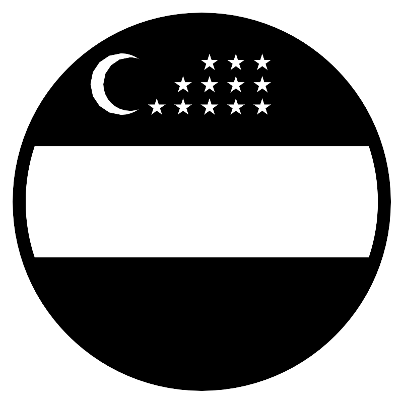 <svg width="800px" height="800px" viewBox="0 0 64 64" xmlns="http://www.w3.org/2000/svg" xmlns:xlink="http://www.w3.org/1999/xlink" aria-hidden="true" role="img" class="iconify iconify--emojione-monotone" preserveAspectRatio="xMidYMid meet"><path d="M32 2C15.432 2 2 15.432 2 32s13.432 30 30 30s30-13.432 30-30S48.568 2 32 2m9.269 7.448l.343-1.048l.342 1.048h1.11l-.896.652l.342 1.049l-.897-.649l-.898.649l.344-1.049l-.899-.651h1.109zm0 3.544l.344-1.051l.342 1.051h1.11l-.896.649l.342 1.05l-.897-.648l-.898.648l.344-1.05l-.899-.649h1.108m0 3.541l.344-1.05l.342 1.05h1.11l-.896.649l.342 1.051l-.897-.649l-.898.649l.344-1.051l-.899-.649h1.108m-4.191-7.085l.344-1.048l.344 1.048h1.11l-.899.652l.342 1.049l-.896-.649l-.898.649l.344-1.049l-.899-.652h1.108m0 3.544l.344-1.051l.344 1.051h1.11l-.899.649l.342 1.05l-.896-.648l-.898.648l.344-1.05l-.897-.649h1.106m0 3.541l.344-1.05l.344 1.05h1.11l-.899.649l.342 1.051l-.896-.649l-.898.649l.344-1.051l-.897-.649h1.106M32.89 9.448l.341-1.048l.344 1.048h1.109l-.898.652l.344 1.049l-.898-.649l-.897.649l.342-1.049l-.896-.651h1.109zm0 3.544l.342-1.051l.344 1.051h1.109l-.898.649l.344 1.05l-.898-.648l-.897.648l.342-1.05l-.896-.649h1.108m0 3.541l.342-1.05l.344 1.05h1.109l-.898.649l.344 1.051l-.898-.649l-.897.649l.342-1.051l-.896-.649h1.108m-4.192-3.541l.344-1.051l.342 1.051h1.11l-.896.649l.342 1.05l-.897-.648l-.898.648l.344-1.05l-.898-.649h1.107m0 3.541l.344-1.05l.342 1.05h1.11l-.896.649l.342 1.051l-.897-.649l-.898.649l.344-1.051l-.898-.649h1.107m-4.188 0l.342-1.05l.344 1.05h1.11l-.899.649l.344 1.051l-.898-.649l-.898.649l.344-1.051l-.899-.649h1.11M19.201 8.4c1.116 0 2.14.376 2.966 1.006a4.212 4.212 0 0 0-1.563-.304a4.21 4.21 0 0 0-4.204 4.214a4.208 4.208 0 0 0 4.204 4.214c.553 0 1.079-.109 1.563-.304a4.875 4.875 0 0 1-2.966 1.007c-2.706 0-4.901-2.201-4.901-4.917S16.495 8.4 19.201 8.4M5.441 40.85a27.903 27.903 0 0 1 0-17.7h53.117a27.875 27.875 0 0 1 .001 17.7H5.441" fill="#000000"></path></svg>