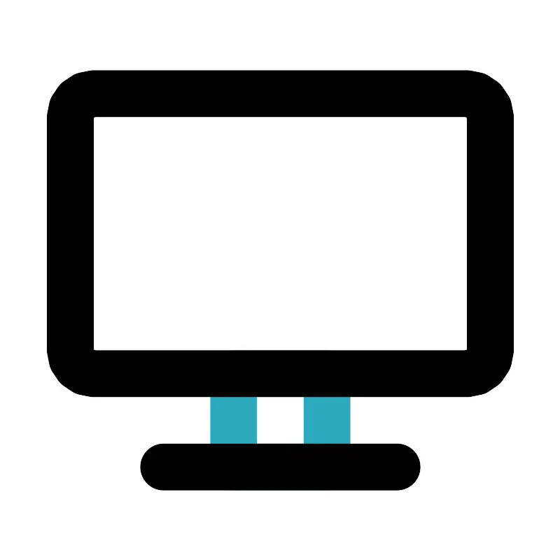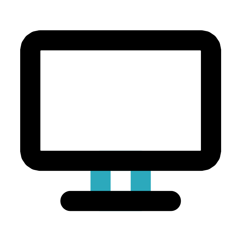 <svg fill="#000000" width="800px" height="800px" viewBox="0 0 24 24" id="flat-screen-tv" data-name="Line Color" xmlns="http://www.w3.org/2000/svg" class="icon line-color"><rect id="secondary" x="10" y="16" width="4" height="4" style="fill: none; stroke: rgb(44, 169, 188); stroke-linecap: round; stroke-linejoin: round; stroke-width: 2;"></rect><path id="primary" d="M7,20H17m3-4H4a1,1,0,0,1-1-1V5A1,1,0,0,1,4,4H20a1,1,0,0,1,1,1V15A1,1,0,0,1,20,16Z" style="fill: none; stroke: rgb(0, 0, 0); stroke-linecap: round; stroke-linejoin: round; stroke-width: 2;"></path></svg>