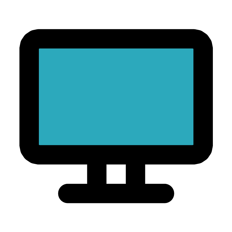 <svg fill="#000000" width="800px" height="800px" viewBox="0 0 24 24" id="flat-screen-tv" data-name="Flat Line" xmlns="http://www.w3.org/2000/svg" class="icon flat-line"><path id="secondary" d="M20,16H4a1,1,0,0,1-1-1V5A1,1,0,0,1,4,4H20a1,1,0,0,1,1,1V15A1,1,0,0,1,20,16Z" style="fill: rgb(44, 169, 188); stroke-width: 2;"></path><path id="primary" d="M10,20V16h4v4ZM7,20H17m4-5V5a1,1,0,0,0-1-1H4A1,1,0,0,0,3,5V15a1,1,0,0,0,1,1H20A1,1,0,0,0,21,15Z" style="fill: none; stroke: rgb(0, 0, 0); stroke-linecap: round; stroke-linejoin: round; stroke-width: 2;"></path></svg>