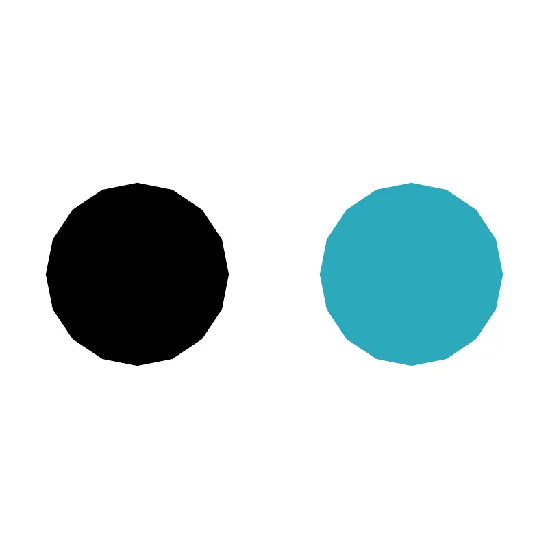 <svg fill="#000000" width="800px" height="800px" viewBox="0 0 24 24" id="flickr" data-name="Flat Color" xmlns="http://www.w3.org/2000/svg" class="icon flat-color"><circle id="secondary" cx="18" cy="12" r="4" style="fill: rgb(44, 169, 188);"></circle><circle id="primary" cx="6" cy="12" r="4" style="fill: rgb(0, 0, 0);"></circle></svg>