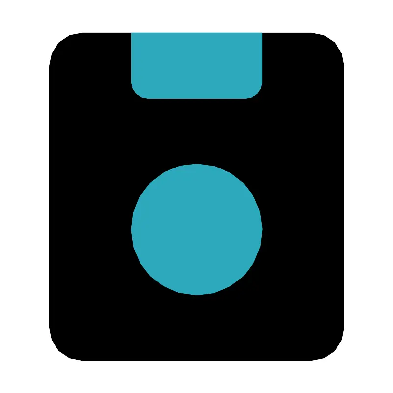 <svg fill="#000000" width="800px" height="800px" viewBox="0 0 24 24" id="floppy-disk" data-name="Flat Color" xmlns="http://www.w3.org/2000/svg" class="icon flat-color"><rect id="primary" x="3" y="2" width="18" height="20" rx="2" style="fill: rgb(0, 0, 0);"></rect><path id="secondary" d="M15.86,12.91a4,4,0,0,1-4.95,4.95,4,4,0,0,1-2.77-2.77,4,4,0,0,1,4.95-4.95A4,4,0,0,1,15.86,12.91ZM16,2H8V5A1,1,0,0,0,9,6h6a1,1,0,0,0,1-1Z" style="fill: rgb(44, 169, 188);"></path></svg>