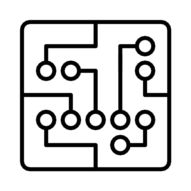 <svg width="800px" height="800px" viewBox="0 0 48 48" id="Layer_2" data-name="Layer 2" xmlns="http://www.w3.org/2000/svg"><defs><style>.cls-1{fill:none;stroke:#000000;stroke-linecap:round;stroke-linejoin:round;}</style></defs><circle class="cls-1" cx="17.78" cy="30.11" r="2.07"/><circle class="cls-1" cx="11.57" cy="30.11" r="2.07"/><circle class="cls-1" cx="11.57" cy="17.76" r="2.07"/><circle class="cls-1" cx="17.78" cy="17.76" r="2.07"/><circle class="cls-1" cx="36.43" cy="30.11" r="2.07"/><circle class="cls-1" cx="36.43" cy="17.76" r="2.07"/><circle class="cls-1" cx="30.21" cy="36.43" r="2.07"/><circle class="cls-1" cx="36.43" cy="11.57" r="2.07"/><circle class="cls-1" cx="24" cy="30.11" r="2.07"/><circle class="cls-1" cx="30.21" cy="30.11" r="2.07"/><line class="cls-1" x1="30.21" y1="17.76" x2="30.21" y2="13.64"/><line class="cls-1" x1="11.57" y1="11.57" x2="24" y2="11.57"/><path class="cls-1" d="M40.5,5.5H7.5a2,2,0,0,0-2,2v33a2,2,0,0,0,2,2h33a2,2,0,0,0,2-2V7.5A2,2,0,0,0,40.5,5.5Z"/><line class="cls-1" x1="24" y1="28.04" x2="24" y2="17.76"/><line class="cls-1" x1="24" y1="5.5" x2="24" y2="11.57"/><line class="cls-1" x1="24" y1="42.5" x2="24" y2="36.43"/><line class="cls-1" x1="11.57" y1="36.43" x2="23.8" y2="36.43"/><line class="cls-1" x1="36.43" y1="32.18" x2="36.43" y2="36.43"/><line class="cls-1" x1="32.28" y1="36.43" x2="36.43" y2="36.43"/><line class="cls-1" x1="42.5" y1="23.84" x2="36.43" y2="23.84"/><line class="cls-1" x1="36.43" y1="19.83" x2="36.43" y2="23.84"/><line class="cls-1" x1="30.21" y1="28.04" x2="30.21" y2="11.57"/><line class="cls-1" x1="34.36" y1="11.57" x2="30.21" y2="11.57"/><line class="cls-1" x1="11.57" y1="32.18" x2="11.57" y2="36.43"/><line class="cls-1" x1="5.5" y1="23.84" x2="17.69" y2="23.84"/><line class="cls-1" x1="11.57" y1="15.69" x2="11.57" y2="11.57"/><line class="cls-1" x1="19.85" y1="17.76" x2="24" y2="17.76"/><line class="cls-1" x1="17.78" y1="28.04" x2="17.78" y2="23.84"/></svg>
