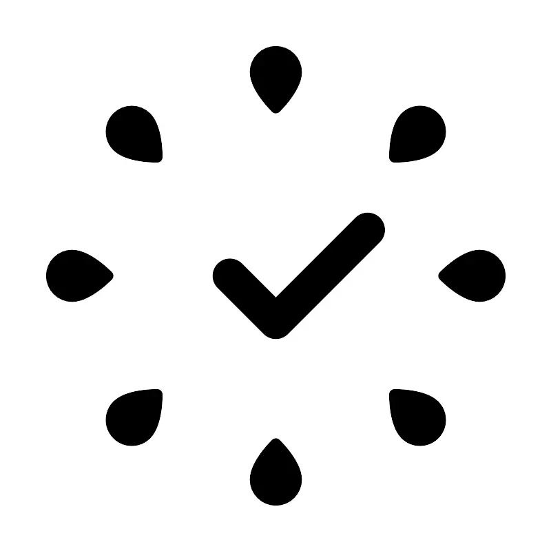 <svg width="800px" height="800px" viewBox="0 0 192 192" xmlns="http://www.w3.org/2000/svg" fill="none"><path fill="#000000" d="M105 25c0 5.34-5.24 11.264-7.723 13.771a1.78 1.78 0 0 1-2.554 0C92.239 36.264 87 30.341 87 25a9 9 0 1 1 18 0ZM87 167c0-5.341 5.24-11.264 7.723-13.771a1.779 1.779 0 0 1 2.554 0C99.761 155.736 105 161.659 105 167a9 9 0 0 1-9 9 9 9 0 0 1-9-9Zm80-62c-5.341 0-11.264-5.24-13.771-7.723a1.779 1.779 0 0 1 0-2.554C155.736 92.239 161.659 87 167 87a9 9 0 0 1 9 9 9 9 0 0 1-9 9ZM25 87c5.34 0 11.264 5.24 13.771 7.723a1.78 1.78 0 0 1 0 2.554C36.264 99.761 30.341 105 25 105a9 9 0 1 1 0-18Zm127.569-34.84c-3.777 3.776-11.67 4.26-15.199 4.277a1.78 1.78 0 0 1-1.806-1.807c.017-3.53.5-11.422 4.277-15.199a9 9 0 1 1 12.728 12.728ZM39.431 139.841c3.777-3.777 11.67-4.26 15.2-4.277a1.78 1.78 0 0 1 1.805 1.806c-.017 3.529-.5 11.422-4.277 15.199a9 9 0 1 1-12.728-12.728Zm100.41 12.728c-3.777-3.777-4.26-11.67-4.277-15.199a1.78 1.78 0 0 1 1.806-1.806c3.529.017 11.422.5 15.199 4.277a9.001 9.001 0 0 1 0 12.728 9.001 9.001 0 0 1-12.728 0ZM52.16 39.431c3.776 3.777 4.26 11.67 4.277 15.2a1.78 1.78 0 0 1-1.807 1.805c-3.53-.017-11.422-.5-15.199-4.277a9 9 0 0 1 0-12.727 9 9 0 0 1 12.728 0Z"/><path stroke="#000000" stroke-linecap="round" stroke-linejoin="round" stroke-width="12" d="m80 96 16 16 32-32"/></svg>