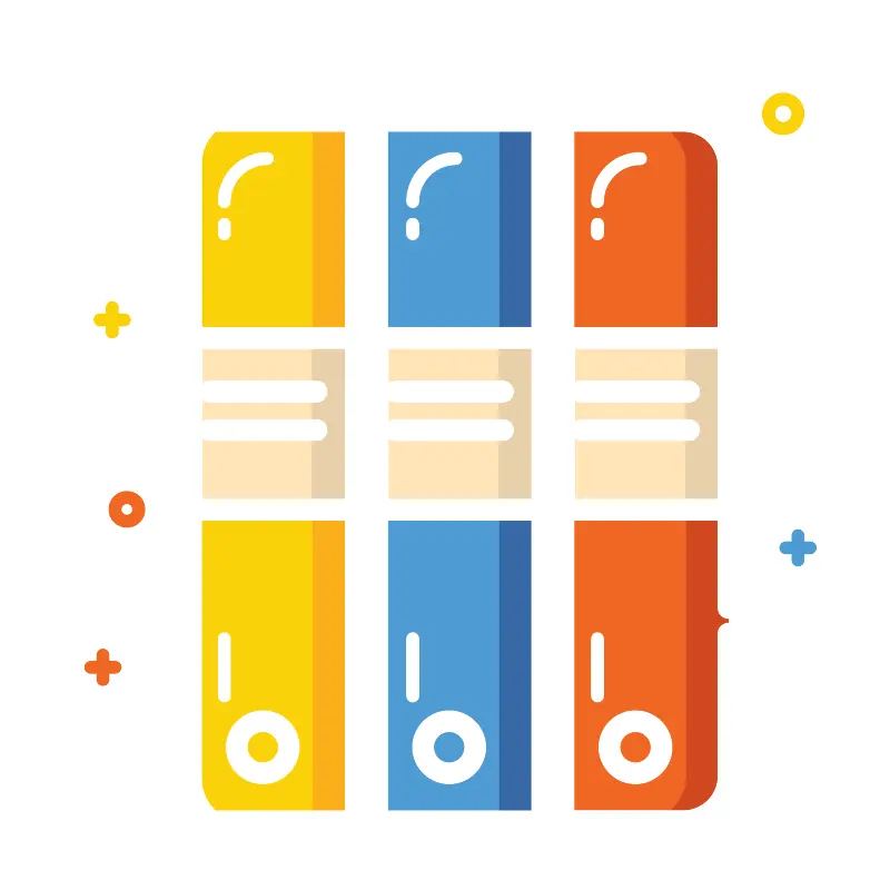 <svg width="800px" height="800px" viewBox="0 0 1024 1024" class="icon" version="1.1" xmlns="http://www.w3.org/2000/svg"><path d="M145.380453 606.134993c-11.472635 0-20.73163-9.258995-20.73163-20.73163 0-11.472635 9.258995-20.73163 20.73163-20.73163 11.472635 0 20.73163 9.258995 20.73163 20.73163 0 11.472635-9.258995 20.73163-20.73163 20.73163z m0-27.373574c-3.622506 0-6.641944 3.019438-6.641944 6.641944s3.019438 6.641944 6.641944 6.641944c3.622506 0 6.641944-3.019438 6.641944-6.641944s-3.019438-6.641944-6.641944-6.641944z" fill="#F16723" /><path d="M890.711632 480.134641m-4.226598 0a4.226599 4.226599 0 1 0 8.453197 0 4.226599 4.226599 0 1 0-8.453197 0Z" fill="" /><path d="M347.664358 69.527957m-4.226599 0a4.226599 4.226599 0 1 0 8.453197 0 4.226599 4.226599 0 1 0-8.453197 0Z" fill="" /><path d="M917.482138 741.191611m-4.226599 0a4.226599 4.226599 0 1 0 8.453198 0 4.226599 4.226599 0 1 0-8.453198 0Z" fill="" /><path d="M900.57472 154.26573c-13.283888 0-23.951749-10.667861-23.95175-23.951749s10.667861-23.951749 23.95175-23.95175 23.951749 10.667861 23.951749 23.95175-10.667861 23.951749-23.951749 23.951749z m0-33.813813c-5.434783 0-9.863087 4.428304-9.863088 9.863088s4.428304 9.863087 9.863088 9.863087c5.434783 0 9.863087-4.428304 9.863087-9.863087s-4.429328-9.863087-9.863087-9.863088z" fill="#FBD20A" /><path d="M131.89486 760.111987h-7.044331v-7.044331c0-3.824212-3.220119-7.044331-7.044331-7.044331s-7.044331 3.220119-7.044331 7.044331v7.044331h-7.044331c-3.824212 0-7.044331 3.220119-7.044331 7.044331s3.220119 7.044331 7.044331 7.044332h7.044331v7.044331c0 3.824212 3.220119 7.044331 7.044331 7.044331s7.044331-3.220119 7.044331-7.044331v-7.044331h7.044331c3.824212 0 7.044331-3.220119 7.044331-7.044332s-3.220119-7.044331-7.044331-7.044331z" fill="#F16723" /><path d="M117.805174 97.90801m-6.239557 0a6.239557 6.239557 0 1 0 12.479114 0 6.239557 6.239557 0 1 0-12.479114 0Z" fill="" /><path d="M613.753724 97.90801m-6.239558 0a6.239557 6.239557 0 1 0 12.479115 0 6.239557 6.239557 0 1 0-12.479115 0Z" fill="" /><path d="M85.600909 657.259635m-6.239557 0a6.239557 6.239557 0 1 0 12.479114 0 6.239557 6.239557 0 1 0-12.479114 0Z" fill="" /><path d="M897.152895 331.591406m-6.239557 0a6.239557 6.239557 0 1 0 12.479114 0 6.239557 6.239557 0 1 0-12.479114 0Z" fill="" /><path d="M931.5708 622.639h-7.044331v-7.044331c0-3.824212-3.220119-7.044331-7.044331-7.044331s-7.044331 3.220119-7.044331 7.044331v7.044331h-7.044331c-3.824212 0-7.044331 3.220119-7.044331 7.044331s3.220119 7.044331 7.044331 7.044332h7.044331v7.044331c0 3.824212 3.220119 7.044331 7.044331 7.044331s7.044331-3.220119 7.044331-7.044331v-7.044331h7.044331c3.824212 0 7.044331-3.220119 7.044331-7.044332s-3.220119-7.044331-7.044331-7.044331z" fill="#4E9BD4" /><path d="M142.562721 360.37487h-7.044331v-7.044331c0-3.824212-3.220119-7.044331-7.044331-7.044331s-7.044331 3.220119-7.044331 7.044331v7.044331h-7.044331c-3.824212 0-7.044331 3.220119-7.044331 7.044331s3.220119 7.044331 7.044331 7.044331h7.044331v7.044331c0 3.824212 3.220119 7.044331 7.044331 7.044331s7.044331-3.220119 7.044331-7.044331v-7.044331h7.044331c3.824212 0 7.044331-3.220119 7.044331-7.044331s-3.220119-7.044331-7.044331-7.044331z" fill="#FBD20A" /><path d="M257.491801 944.281312h-10.667861c-28.78244 0-52.131121-23.348681-52.131122-52.131121V190.697618c0-28.78244 23.348681-52.131121 52.131122-52.131121h10.667861V944.281312z" fill="#FFFFFF" /><path d="M355.715168 136.755243h53.1376v805.714816h-53.1376z" fill="#FAAF1A" /><path d="M358.5329 944.281312h-77.491737c-26.971187 0-48.911002-21.938791-48.911002-48.909978V187.476475c0-26.971187 21.938791-48.911002 48.911002-48.911002h77.491737v805.715839z" fill="#FBD20A" /><path d="M405.833331 138.566497h40.658486V944.281312h-40.658486z" fill="#FFFFFF" /><path d="M565.044427 136.755243h61.590798v805.714816H565.044427z" fill="#3769A5" /><path d="M446.290112 138.566497h127.005807V944.281312H446.290112z" fill="#4E9BD4" /><path d="M619.993281 138.566497h40.658486V944.281312h-40.658486z" fill="#FFFFFF" /><path d="M775.983234 942.470059h-15.498552V136.755243h15.498552c34.015518 0 61.590798 27.57528 61.590798 61.590798v682.533221c0 34.015518-27.574256 61.590798-61.590798 61.590797z" fill="#D0481F" /><path d="M735.92884 944.281312h-75.278097V138.566497h75.278097c28.78244 0 52.331803 23.348681 52.331803 52.331802v701.251892c-0.200682 28.581759-23.549362 52.131121-52.331803 52.131121z" fill="#F16723" /><path d="M257.491801 238.400435c-3.824212 0-7.044331-3.220119-7.044331-7.044331 0-31.197786 25.360616-56.559425 56.559425-56.559425 3.824212 0 7.044331 3.220119 7.044331 7.044331s-3.220119 7.044331-7.044331 7.044331c-23.348681 0-42.469739 19.121058-42.469739 42.469739-0.001024 3.824212-3.221143 7.045355-7.045355 7.045355zM257.491801 275.435391c-3.824212 0-7.044331-3.220119-7.044331-7.044331v-11.070248c0-3.824212 3.220119-7.044331 7.044331-7.044331s7.044331 3.220119 7.044331 7.044331v11.070248c0 3.824212-3.220119 7.044331-7.044331 7.044331zM257.491801 807.210712c-3.824212 0-7.044331-3.220119-7.044331-7.044331v-66.019101c0-3.824212 3.220119-7.044331 7.044331-7.044332s7.044331 3.220119 7.044331 7.044332v66.019101c0 3.824212-3.220119 7.044331-7.044331 7.044331zM474.267778 238.400435c-3.824212 0-7.044331-3.220119-7.044331-7.044331 0-31.197786 25.360616-56.559425 56.559425-56.559425 3.824212 0 7.044331 3.220119 7.044331 7.044331s-3.220119 7.044331-7.044331 7.044331c-23.348681 0-42.469739 19.121058-42.469739 42.469739 0 3.824212-3.221143 7.045355-7.045355 7.045355zM474.267778 275.435391c-3.824212 0-7.044331-3.220119-7.044331-7.044331v-11.070248c0-3.824212 3.220119-7.044331 7.044331-7.044331s7.044331 3.220119 7.044331 7.044331v11.070248c0.001024 3.824212-3.220119 7.044331-7.044331 7.044331zM474.267778 807.210712c-3.824212 0-7.044331-3.220119-7.044331-7.044331v-66.019101c0-3.824212 3.220119-7.044331 7.044331-7.044332s7.044331 3.220119 7.044331 7.044332v66.019101c0.001024 3.824212-3.220119 7.044331-7.044331 7.044331zM686.817156 238.400435c-3.824212 0-7.044331-3.220119