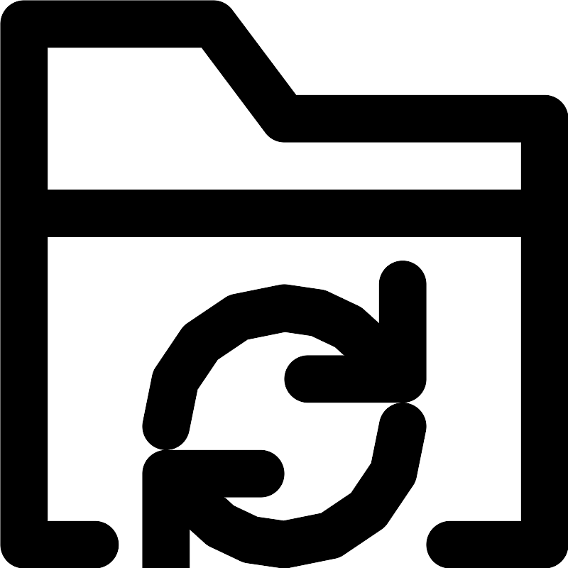 <path fill="none" stroke="#000000" stroke-width="2" d="M7.0001,18 C7.0001,15.239 9.2391,13 12.0001,13 C13.9851,13 15.6991,14.156 16.5,16 M17.0001,18 C17.0001,20.761 14.7611,23 12.0001,23 C10.0151,23 8.3011,21.844 7.5,20 M13.0001,16 L17.0001,16 L17.0001,12 M11.0001,20 L7.0001,20 L7.0001,24 M4.0001,23 L1.0001,23 L1.0001,5 L1.0001,1 L9.0001,1 L12.0001,5 L23.0001,5 L23.0001,23 L19.0001,23 M1.0001,9 L23.0001,9 M4,23 L1,23 L1,1 L9,1 L12,5 L23,5 L23,23 L19,23 M1,9 L23,9"/>