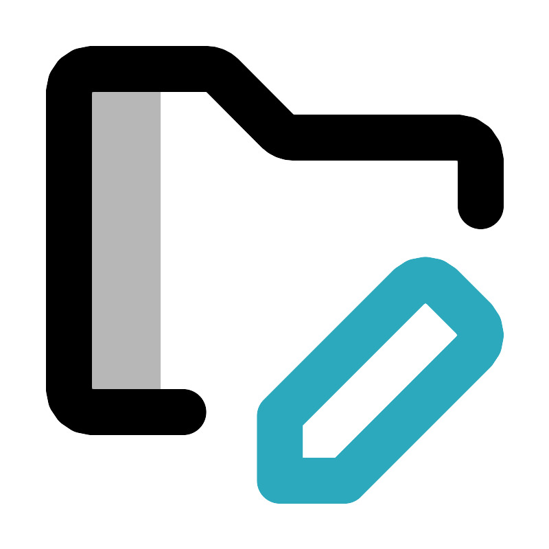 <svg width="800px" height="800px" viewBox="0 0 24 24" id="folder-edit" data-name="multi color" xmlns="http://www.w3.org/2000/svg" class="icon multi-color"><path id="tertiary-fill" d="M4,3H7A0,0,0,0,1,7,3V18a0,0,0,0,1,0,0H4a1,1,0,0,1-1-1V4A1,1,0,0,1,4,3Z" style="fill: #b7b7b7; stroke-width: 2;"></path><path id="secondary-stroke" d="M15.05,21H12.22V18.17l5.66-5.66a1,1,0,0,1,1.41,0l1.42,1.42a1,1,0,0,1,0,1.41Z" style="fill: none; stroke: rgb(44, 169, 188); stroke-linecap: round; stroke-linejoin: round; stroke-width: 2;"></path><path id="primary-stroke" d="M21,9V7a1,1,0,0,0-1-1H12.83a1,1,0,0,1-.71-.29L9.71,3.29A1,1,0,0,0,9,3H4A1,1,0,0,0,3,4V17a1,1,0,0,0,1,1H8" style="fill: none; stroke: rgb(0, 0, 0); stroke-linecap: round; stroke-linejoin: round; stroke-width: 2;"></path></svg>