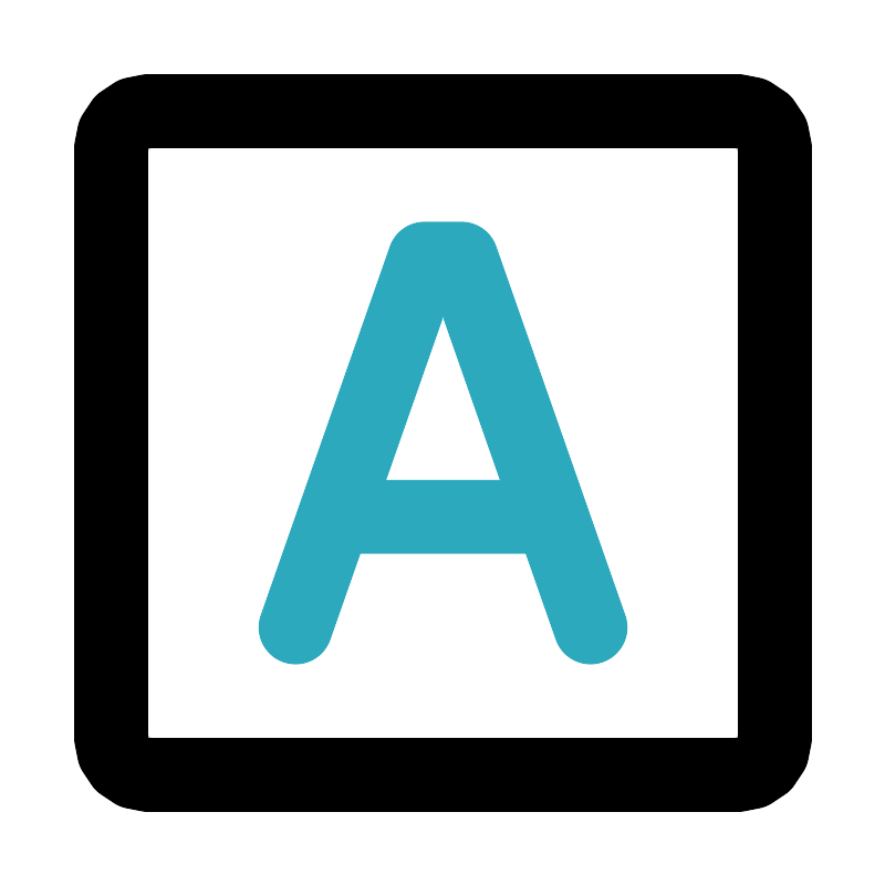 <svg fill="#000000" width="800px" height="800px" viewBox="0 0 24 24" id="font-square-3" data-name="Line Color" xmlns="http://www.w3.org/2000/svg" class="icon line-color"><polyline id="secondary" points="16 17 12.5 7 11.5 7 8 17" style="fill: none; stroke: rgb(44, 169, 188); stroke-linecap: round; stroke-linejoin: round; stroke-width: 2;"></polyline><line id="secondary-2" data-name="secondary" x1="9.52" y1="14" x2="14.48" y2="14" style="fill: none; stroke: rgb(44, 169, 188); stroke-linecap: round; stroke-linejoin: round; stroke-width: 2;"></line><rect id="primary" x="3" y="3" width="18" height="18" rx="1" style="fill: none; stroke: rgb(0, 0, 0); stroke-linecap: round; stroke-linejoin: round; stroke-width: 2;"></rect></svg>