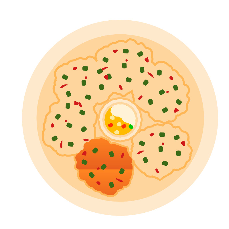 <svg width="800px" height="800px" viewBox="0 0 64 64" data-name="tod mun" id="tod_mun" xmlns="http://www.w3.org/2000/svg" xmlns:xlink="http://www.w3.org/1999/xlink"><defs><style>.cls-1{fill:#ffe9cc;}.cls-2{fill:#ffd59e;}.cls-3{fill:#ffb657;}.cls-4{fill:url(#linear-gradient);}.cls-5{fill:#3b6b16;}.cls-6{fill:#d11b1b;}.cls-7{fill:url(#linear-gradient-2);}.cls-8{fill:url(#linear-gradient-3);}.cls-9{fill:url(#linear-gradient-4);}.cls-10{fill:url(#linear-gradient-5);}.cls-11{fill:url(#linear-gradient-6);}.cls-12{fill:#ffc06e;}.cls-13{fill:#fb0;}.cls-14{fill:#ffe99a;}.cls-15{fill:#ff2f0a;}.cls-16{fill:#00c40a;}.cls-17{fill:#fff2d7;opacity:0.47;}</style><linearGradient gradientTransform="matrix(0.905, 0.424, -0.424, 0.905, 20.504, -9.583)" gradientUnits="userSpaceOnUse" id="linear-gradient" x1="31.739" x2="31.241" y1="42.592" y2="51.892"><stop offset="0" stop-color="#ff8521"/><stop offset="1" stop-color="#e85f1e"/></linearGradient><linearGradient gradientTransform="matrix(-0.912, 0.411, -0.411, -0.912, 65.322, 26.59)" id="linear-gradient-2" x1="24.771" x2="24.272" xlink:href="#linear-gradient" y1="15.473" y2="24.774"/><linearGradient gradientTransform="translate(36.862 -7.437) rotate(97.397)" id="linear-gradient-3" x1="44.649" x2="44.151" xlink:href="#linear-gradient" y1="7.222" y2="16.522"/><linearGradient gradientTransform="translate(52.548 45.17) rotate(-138.149)" id="linear-gradient-4" x1="18.755" x2="18.257" xlink:href="#linear-gradient" y1="4.897" y2="14.197"/><linearGradient gradientTransform="matrix(-0.912, 0.411, -0.411, -0.912, 65.322, 26.59)" id="linear-gradient-5" x1="25.1" x2="24.602" xlink:href="#linear-gradient" y1="-9.977" y2="-0.676"/><linearGradient gradientTransform="matrix(-0.912, 0.411, -0.411, -0.912, 65.322, 26.59)" id="linear-gradient-6" x1="37.089" x2="36.591" xlink:href="#linear-gradient" y1="15.729" y2="25.029"/></defs><title/><circle class="cls-1" cx="33.513" cy="32.882" r="27.37"/><circle class="cls-2" cx="33.564" cy="32.932" r="23.384"/><path class="cls-2" d="M30.832,54.776a3.313,3.313,0,0,1-1.7-.5,1.092,1.092,0,0,1-.2.018.772.772,0,0,1-.517-.183c-.182-.158-.474-.472-.621-.635a2.284,2.284,0,0,1-.292.018,1.8,1.8,0,0,1-.981-.263,3.654,3.654,0,0,1-.791-.694,2.5,2.5,0,0,1-1.606-1.017c-.272-.5-.475-.894-.576-1.095h-.028a3.148,3.148,0,0,1-.973-.129c-.418-.148-.674-.843-.76-1.23a1.027,1.027,0,0,1,.11-.91c.085-.083-.019-.37-.1-.5l-.159-.3c-.377-.087-.726-.29-.686-.632.027-.237.193-1.221.244-1.517l-.271-.509a1.554,1.554,0,0,1-.08-1.163,1.586,1.586,0,0,1,.172-.357,8.562,8.562,0,0,1-1.38.231h-.007c-.118,0-.212.009-.311.018-.129.012-.265.024-.4.024a1.422,1.422,0,0,1-.755-.185,1.68,1.68,0,0,1-.7.149,2.061,2.061,0,0,1-.951-.245c-.683-.355-.846-.756-.867-1.017l-.546-.141-.044-.039a1.6,1.6,0,0,1-.424-.625.885.885,0,0,1-.57-.475,2.087,2.087,0,0,1-1.774-1.109,3.218,3.218,0,0,1-.22-2.191.85.85,0,0,1-.058-.731c.094-.22.3-.594.415-.784a1.96,1.96,0,0,1-.154-1.287,3.714,3.714,0,0,1,.419-.964,2.5,2.5,0,0,1,.482-1.84c.39-.41.707-.725.867-.883a3.3,3.3,0,0,1-.182-.992c.017-.583,1.1-1.325,1.605-1.325a.5.5,0,0,1,.236.055h.015a.711.711,0,0,0,.433-.248l.235-.242a1.358,1.358,0,0,1,.048-.509.518.518,0,0,1-.041-.065,2.924,2.924,0,0,0-.174-.245,1.854,1.854,0,0,1-.472-1.072,1.842,1.842,0,0,1-.786-1.457,1.335,1.335,0,0,1,.409-1.273l-.166-.538.009-.059a1.586,1.586,0,0,1,.31-.688l0-.006a.878.878,0,0,1,.106-.723,2.066,2.066,0,0,1,.015-2.1,3.213,3.213,0,0,1,1.749-1.337.848.848,0,0,1,.59-.435c.237-.034.667-.051.885-.058a1.974,1.974,0,0,1,1.015-.806,3.717,3.717,0,0,1,1.008-.15h.033a2.789,2.789,0,0,1,1.515-.588,1.494,1.494,0,0,1,.3.031c.555.118.99.221,1.207.275a3.3,3.3,0,0,1,.75-.676.739.739,0,0,1,.37-.085c.545,0,1.643.446,1.677.985,0,.056.076.119.188.17l.029-.061a2.067,2.067,0,0,1,.016-2.1,3.208,3.208,0,0,1,1.748-1.337A.847.847,0,0,1,29.309,13c.237-.034.666-.051.885-.058a1.975,1.975,0,0,1,1.015-.807,3.683,3.683,0,0,1,1-.149h.036a2.778,2.778,0,0,1,1.514-.588,1.5,1.5,0,0,1,.3.031c.555.118.988.221,1.206.275a3.3,3.3,0,0,1,.75-.676.739.739,0,0,1,.37-.085c.545,0,1.643.446,1.677.985.009.117.294.225.446.25l.33.073a1.15,1.15,0,0,1,.6-.247.434.434,0,0,1,.327.138c.162.174.8.941.993,1.171l.563.126a1.56,1.56,0,0,1,.936.7,2.186,2.186,0,0,1,.113,1.733l.015.02a1.033,1.033,0,0,1,.186.739.629.629,0,0,1-.182.319l.074.344a1.861,1.861,0,0,1,.756.75c.009,0,.083,0,.112,0a2.1,2.1,0,0,1,1.649-.855,2.033,2.033,0,0,1,.276.019,3.213,3.213,0,0,1,1.932,1.062.831.831,0,0,1,.634.361c.128.2.317.588.411.786a1.959,1.959,0,0,1,1.149.6,3.631,3.631,0,0,1,.557.891,2.5,2.5,0,0,1,1.245,1.437c.118.554.2.993.237,1.215a3.253,3.253,0,0,1,.922.412c.358.261.4,1,.374,1.4-.024.307-.107.7-.369.838-.1.055-.086.36-.048.508l.065.33c.337.192.612.487.476.8-.1.218-.537,1.113-.671,1.381l.113.567a1.548,1.548,0,0,1-.258,1.136,2.183,2.183,0,0,1-1.539.806l-.013.021a.944.944,0,0,1-.721.481.613.613,0,0,1-.244-.05l-.281.2a1.54,1.54,0,0,1-1.5,1.537l-.522-.089a.571.571,0,0,1-.5.264c-.029,0-.058,0-.088-.005a1.469,1.469,0,0,1-.715.186,1.642,1.642,0,0,1-1.025-.383l-.611-.149a2.034,2.034,0,0,1-.5.067,1.039,1.039,0,0,1-.714-.239l-.691-.618s-.325-.233-.557-.44a1.863,1.863,0,0,1-.348-1.06l-.288-.183a1.728,1.728,0,0,1-1.382-.558,11.23,11.23,0,0,1-1.325-.957,2.331,2.331,0,0,0-.724-.421,1.01,1.01,0,0,1-.441-.272c-.17-.228-.059-.65.08-.992a2.006,2.006,0,0,1-.079-.651.839.839,0,0,1-.091-.769c-.071-.129-.179-.323-.245-.458a2.043,2.043,0,0,1-.194-.738,9.479,9.479,0,0,1-1.065.6,2.33,2.33,0,0,0-.679.491.99.99,0,0,1-.427.293h-.015a1.381,1.381,0,0,1-.859-.474,2.045,2.045,0,0,1-.629-.191,1.315,1.315,0,0,1-.15.009.749.749,0,0,1-.589-.237c-.146.014-.367.033-.518.04h-.016a2.346,2.346,0,0,1-.335-.024,1.633,1.633,0,0,1-.739.736l-.383.5a1.359,1.359,0,0,1-.647,1.038l-.845.381s-.344.2-.628.332a.705.705,0,0,1-.3.054,2.9,2.9,0,0,1-.813-.165l-.283.188a2.151,2.151,0,0,1-.684.866,1.755,1.755,0,0,1,.1.733l.222.588a1.354,1.354,0,0,1,.543,1.1l-.119.919s-.008.4-.047.708c-.042.323-.45.7-.677.887l.012.337a1.766,1.766,0,0,1,.321,1.459,11.09,11.09,0,0,1-.039,1.635,1.752,1.752,0,0,0-.012.273,1.723,1.723,0,0,1,.3