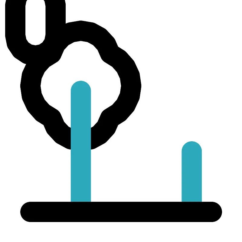 <svg width="800px" height="800px" viewBox="0 0 24 24" id="Line_Color" data-name="Line Color" xmlns="http://www.w3.org/2000/svg"><path id="primary" d="M13,8.5a3.49,3.49,0,0,0-2.09-3.2,3,3,0,0,0-5.82,0,3.49,3.49,0,0,0,0,6.4,3,3,0,0,0,5.82,0A3.49,3.49,0,0,0,13,8.5Z" style="fill:none;stroke:#000000;stroke-linecap:round;stroke-linejoin:round;stroke-width:2px"></path><line id="secondary" x1="8" y1="9" x2="8" y2="21" style="fill:none;stroke:#2ca9bc;stroke-linecap:round;stroke-linejoin:round;stroke-width:2px"></line><line id="secondary-2" data-name="secondary" x1="19" y1="15" x2="19" y2="21" style="fill:none;stroke:#2ca9bc;stroke-linecap:round;stroke-linejoin:round;stroke-width:2px"></line><line id="primary-2" data-name="primary" x1="3" y1="21" x2="21" y2="21" style="fill:none;stroke:#000000;stroke-linecap:round;stroke-linejoin:round;stroke-width:2px"></line><rect id="primary-3" data-name="primary" x="15.5" y="9.5" width="7" height="4" rx="2" transform="translate(30.5 -7.5) rotate(90)" style="fill:none;stroke:#000000;stroke-linecap:round;stroke-linejoin:round;stroke-width:2px"></rect></svg>