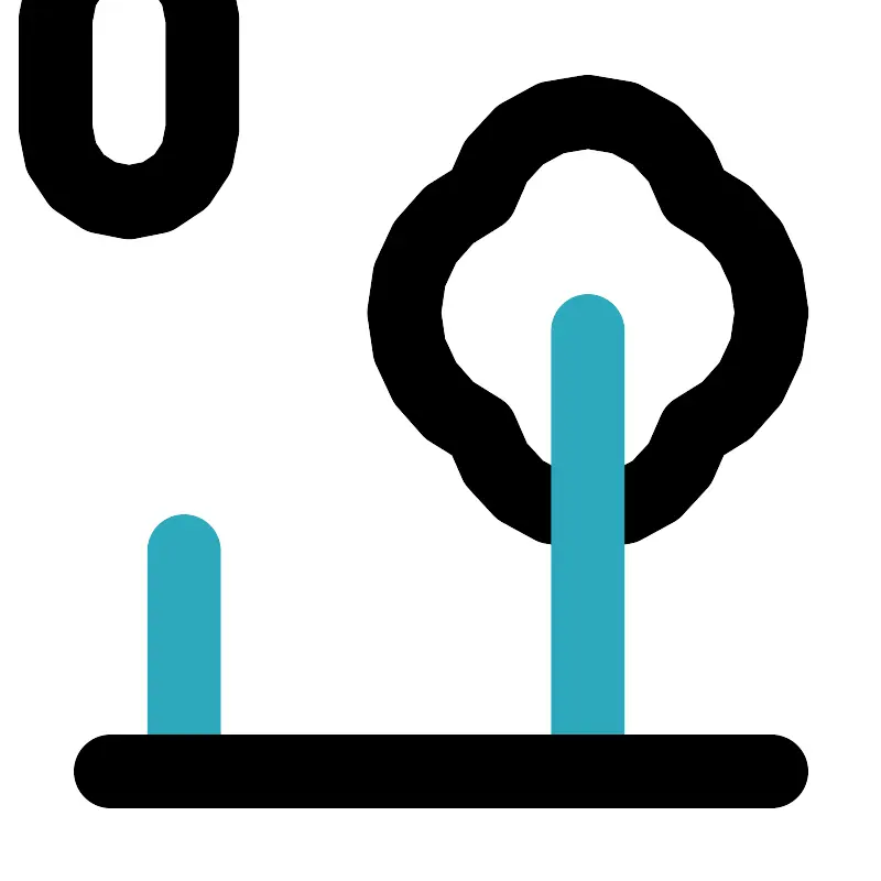 <svg width="800px" height="800px" viewBox="0 0 24 24" id="Line_Color" data-name="Line Color" xmlns="http://www.w3.org/2000/svg"><path id="primary" d="M13.09,11.7a3,3,0,0,0,5.82,0,3.49,3.49,0,0,0,0-6.4,3,3,0,0,0-5.82,0,3.49,3.49,0,0,0,0,6.4Z" style="fill:none;stroke:#000000;stroke-linecap:round;stroke-linejoin:round;stroke-width:2px"></path><line id="secondary" x1="16" y1="21" x2="16" y2="9" style="fill:none;stroke:#2ca9bc;stroke-linecap:round;stroke-linejoin:round;stroke-width:2px"></line><line id="secondary-2" data-name="secondary" x1="5" y1="21" x2="5" y2="15" style="fill:none;stroke:#2ca9bc;stroke-linecap:round;stroke-linejoin:round;stroke-width:2px"></line><line id="primary-2" data-name="primary" x1="3" y1="21" x2="21" y2="21" style="fill:none;stroke:#000000;stroke-linecap:round;stroke-linejoin:round;stroke-width:2px"></line><rect id="primary-3" data-name="primary" x="1.5" y="9.5" width="7" height="4" rx="2" transform="translate(16.5 6.5) rotate(90)" style="fill:none;stroke:#000000;stroke-linecap:round;stroke-linejoin:round;stroke-width:2px"></rect></svg>